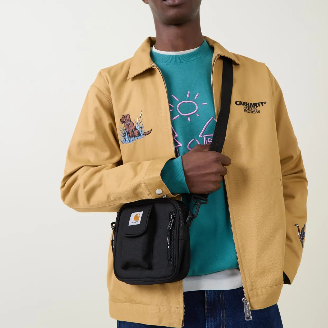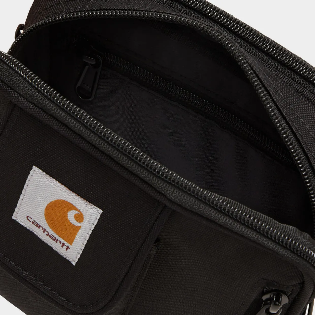 - Branded patch at front, velcro fastened pocket, double-zip around, detachable shoulder strap, side zip pocket
