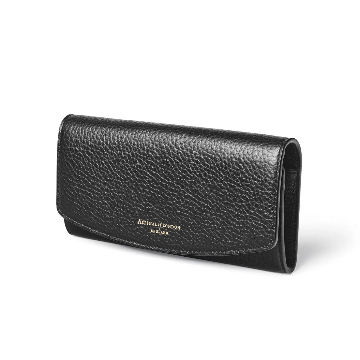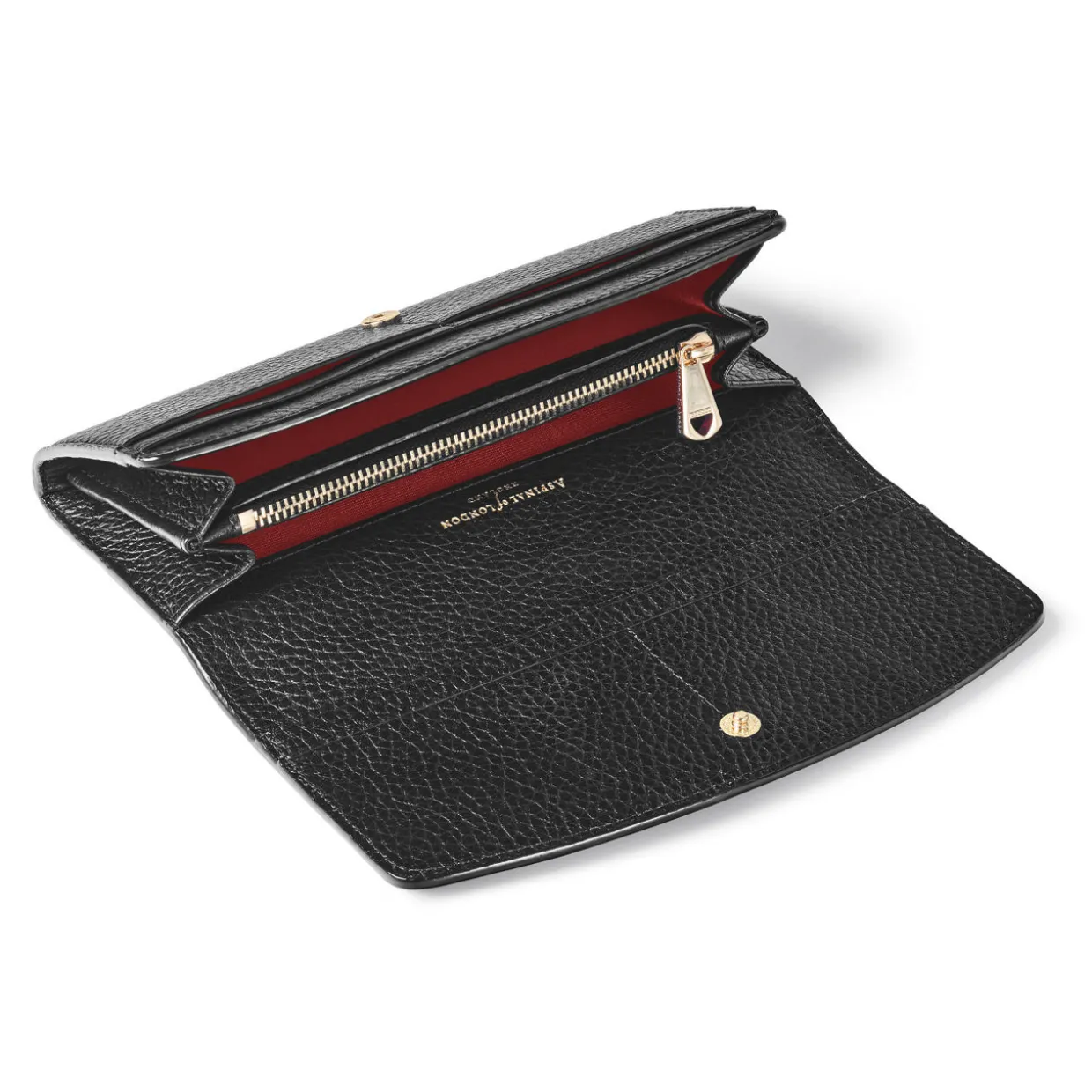 - Interior: One central zipped coin purse, six credit card slots, full-length note compartment