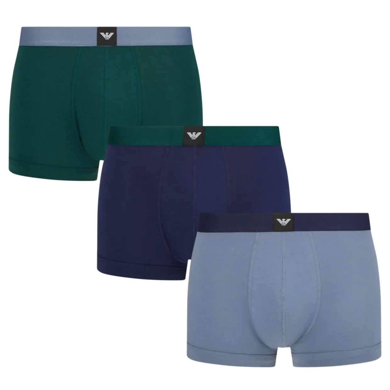- Pack of three, assorted colours, elasticated waistband, logo print, stretch-fused cotton fabric, three-pack