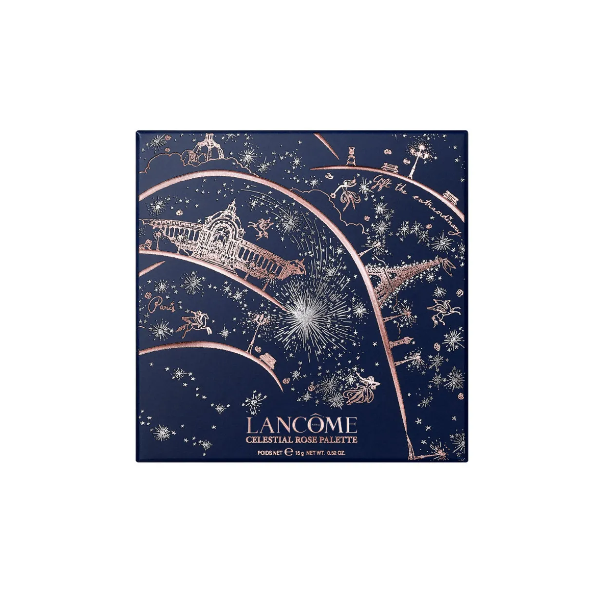 Description: The prisma shine formula comes in 6 desirable shades, including: Midnight Sky inspired by a starry night; Diamond Snowflake captures the city’s sparkling lights and reflections; Star Glint celebrates the golden status that decorated the most majestic monuments in Paris; and Celestial Rose, which pays homage to the iconic Lancôme rose gold Holiday edition. As precious as a jewel, each shade has been embossed with a mesmerizing starburst pattern. On the outside, a rose gold metal box features the legendary Agora rose, embossed on a leather-like effect, hot-stamped with starry sky details and studded with exceptional details, to conjure the image of the Paris heavens at night.