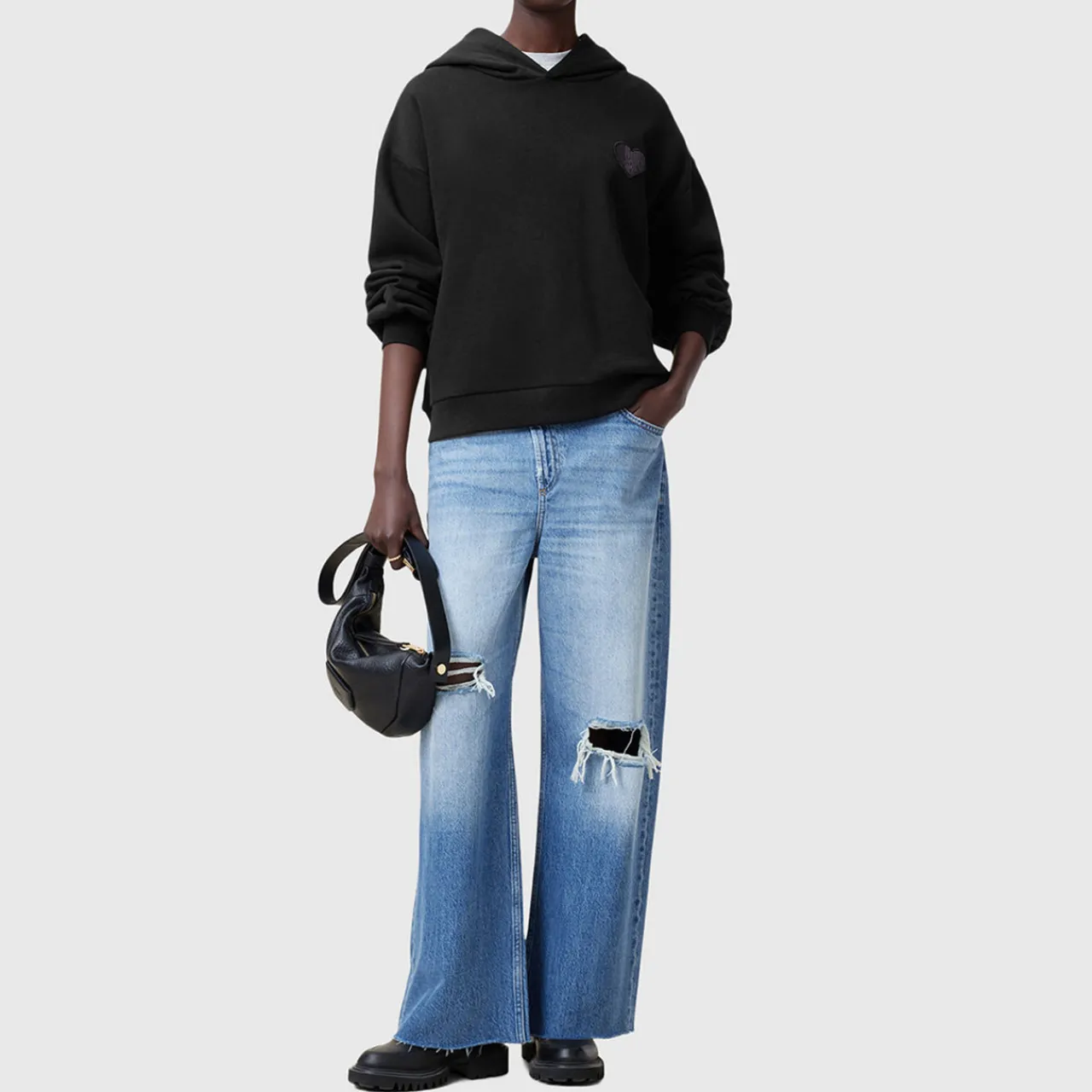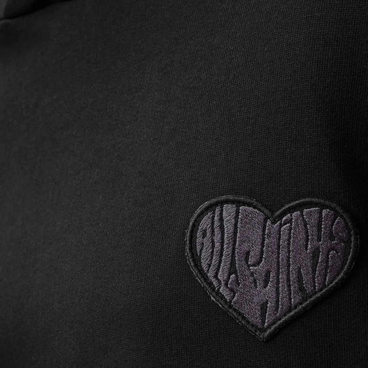 - Hood, dropped shoulders, long sleeves, straight hem, ribbed trims, embroidered heart patch on the chest, rear logo graphic