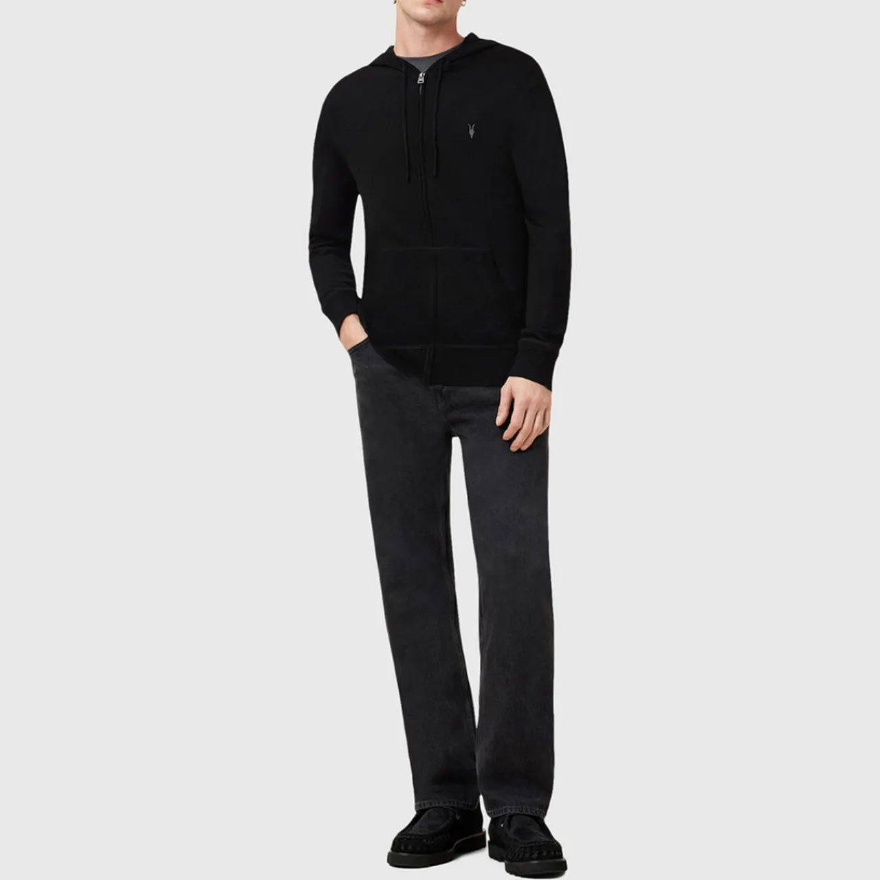 - Hood with adjustable drawstring fastening, long sleeves, front zip fastening, straight hem, rib-knit trims, embroidered logo detail