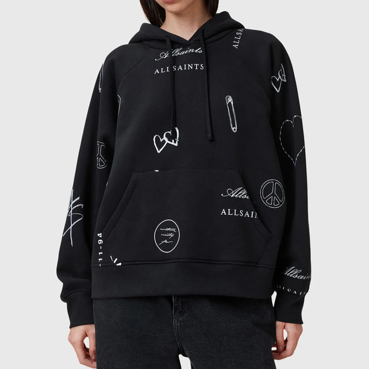 - Graphic print, hooded, drawstrings, front pouch pocket, ribbed cuffs and hem