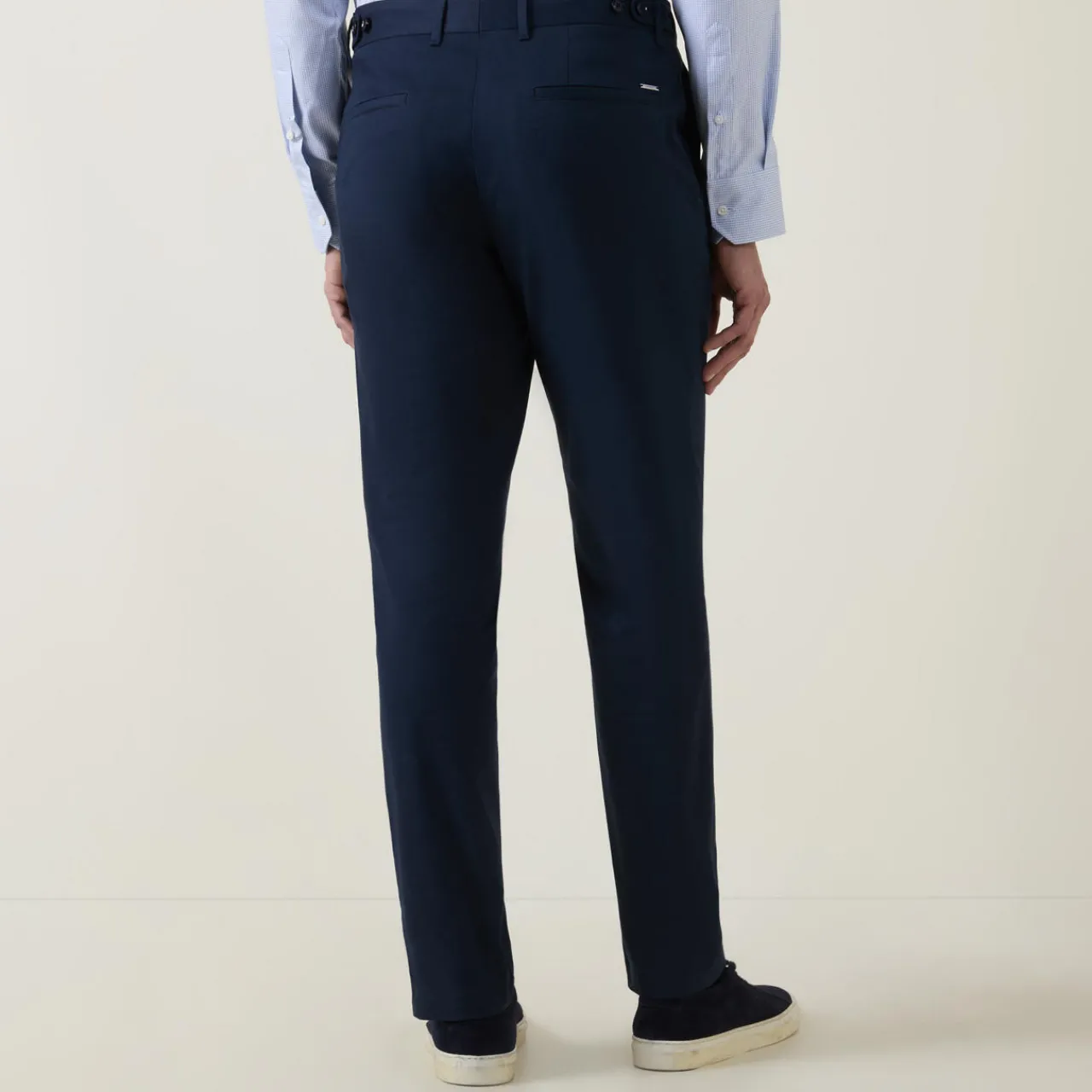 - Slim fit, belt loops, two side pockets, two rear jet pockets, zip and button closure