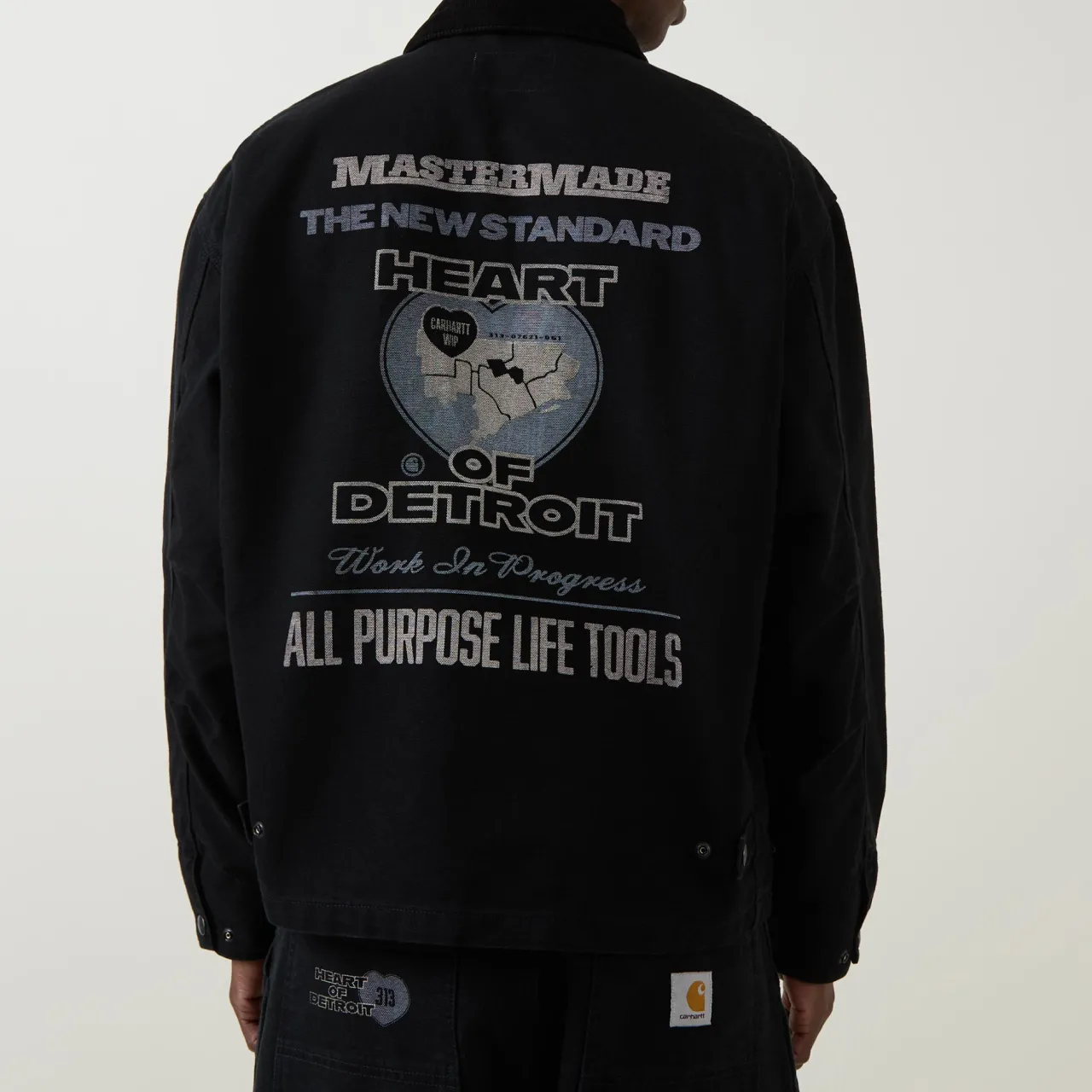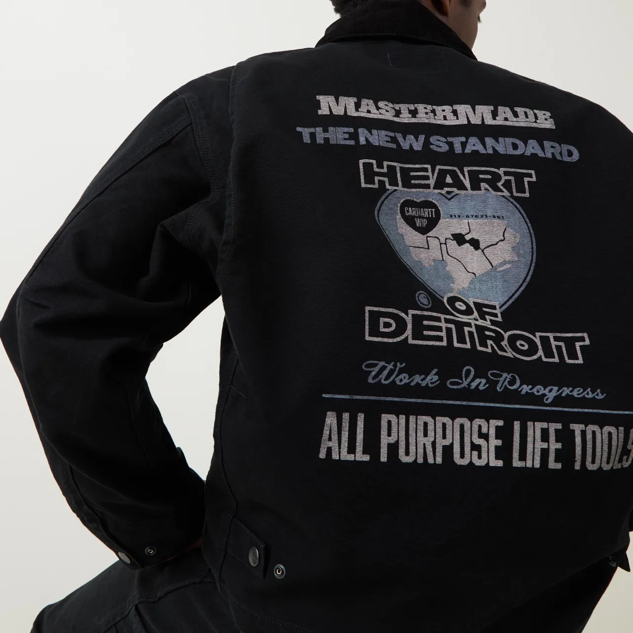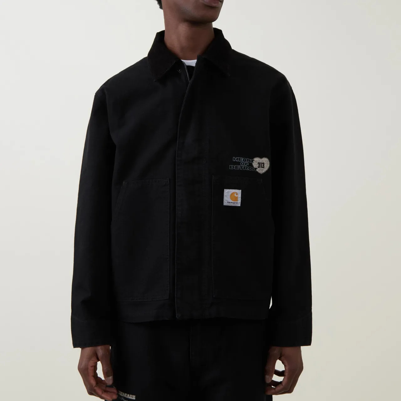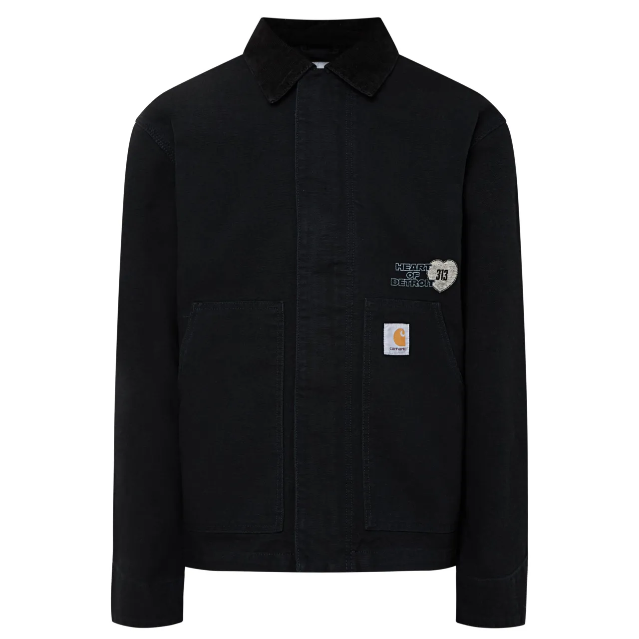 - Long sleeves, corduroy collar, zip fastening, snap button placket, logo patch, graphic print to front and back, adjustable hemline, adjustable cuffs, smooth denim finish, split kangaroo pocket