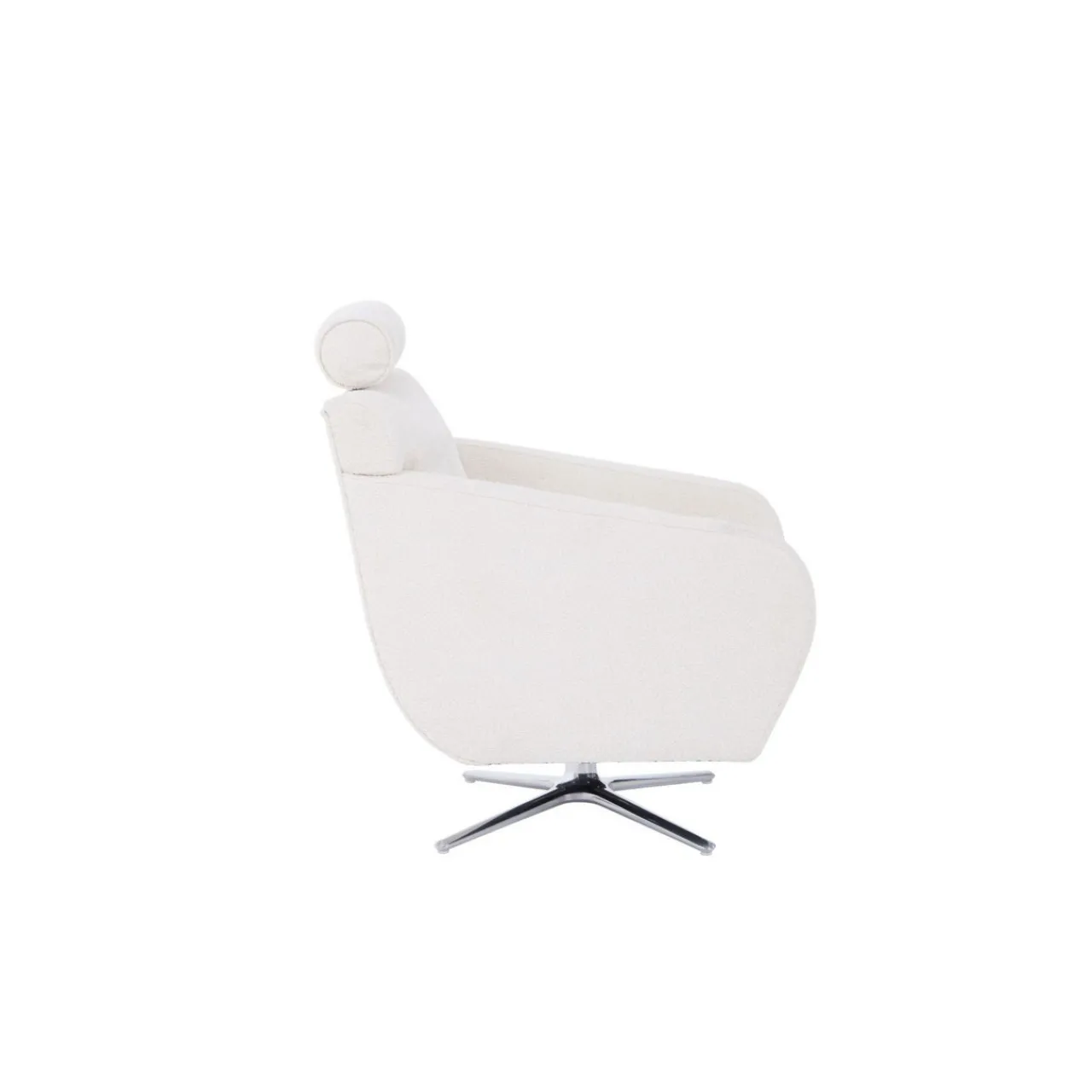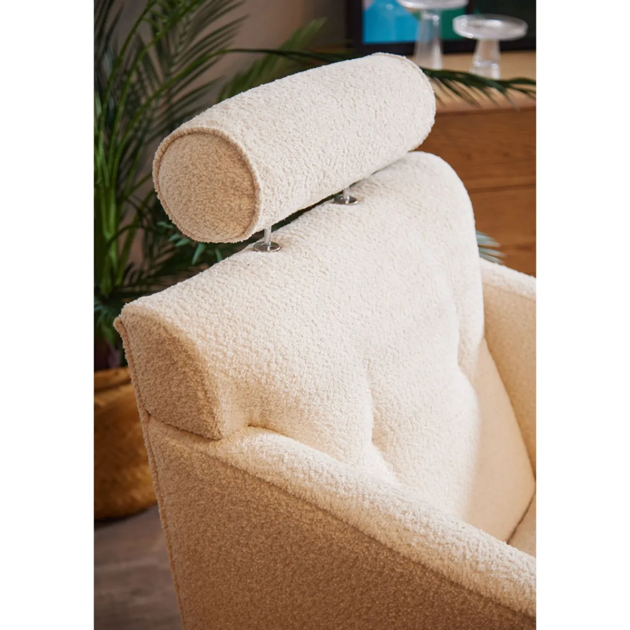 Introducing Bianca, a symbol of refined luxury and unparalleled comfort. This off-white fabric swivel occasional chair is meticulously crafted to embody sophistication and style. With its sleek design and effortless swivel motion, Bianca promises to elevate any room with timeless elegance and supreme comfort, creating an inviting oasis for relaxation and social gatherings alike. This is an on-trend, contemporary piece that brings a touch of Scandi-chic to your living room. Simply adjust your headrest, sit back, and relax.