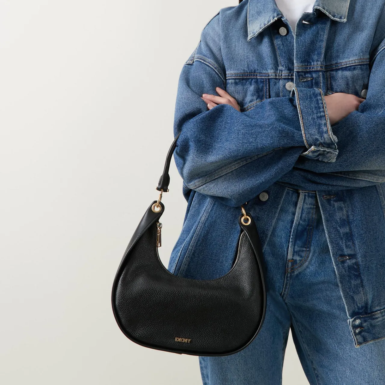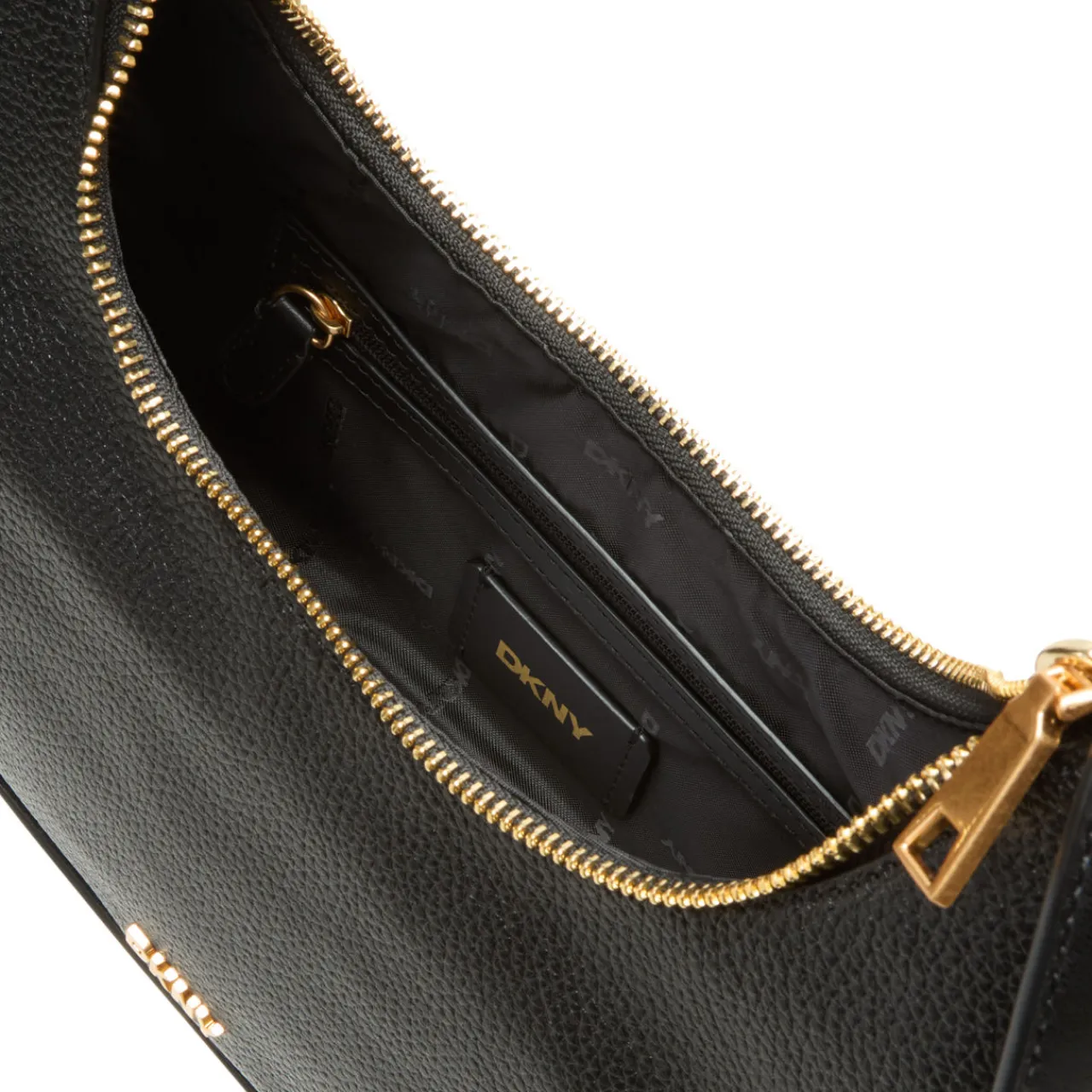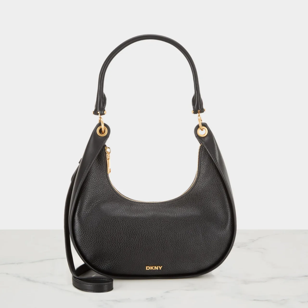 - Smooth finish, logo hardware, gold-toned hardware, top handle, crossbody strap, zip-top fastening, internal zipped pocket