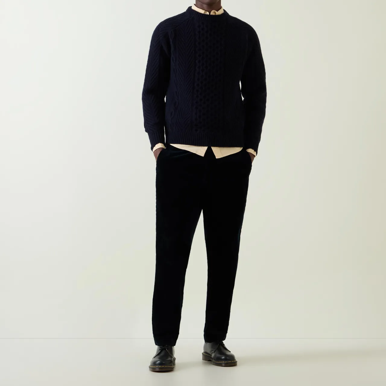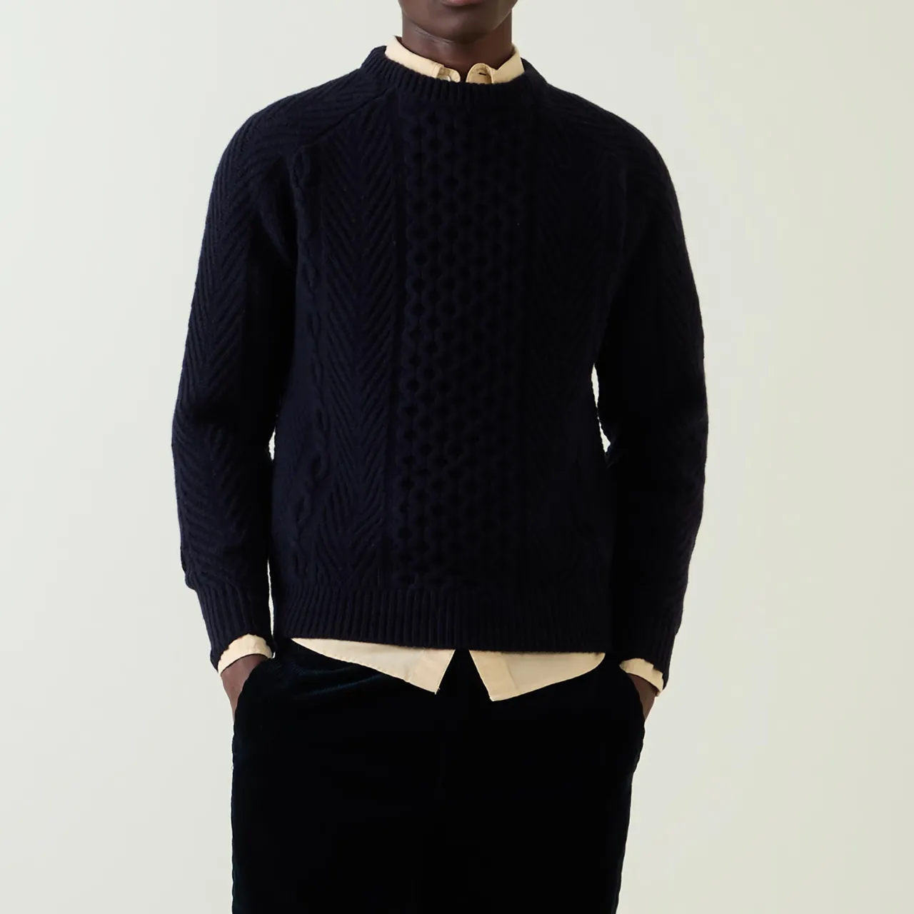 - Crew neck, long sleeves, straight hem, ribbed trims, cable-knit design, soft finish