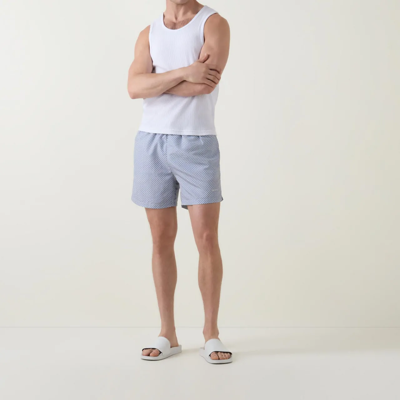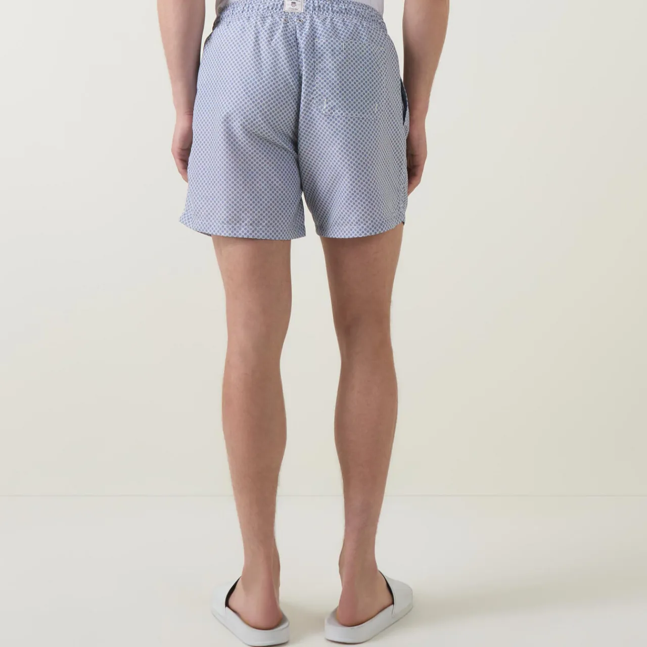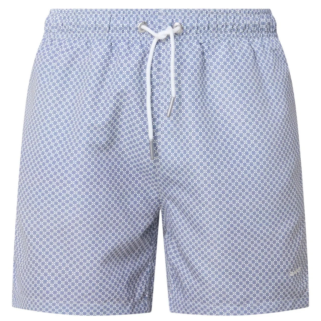 - Elasticated drawstring waistband, two side in-seam pockets, rear logo patch, rear patch pocket, micro printed pattern, mid-rise, straight-cut leg, lightweight