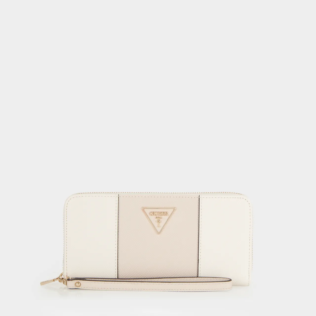 - Wristlet, zip-around fastening, back zipped pocket, gold-toned hardware, card slots, internal coin compartment