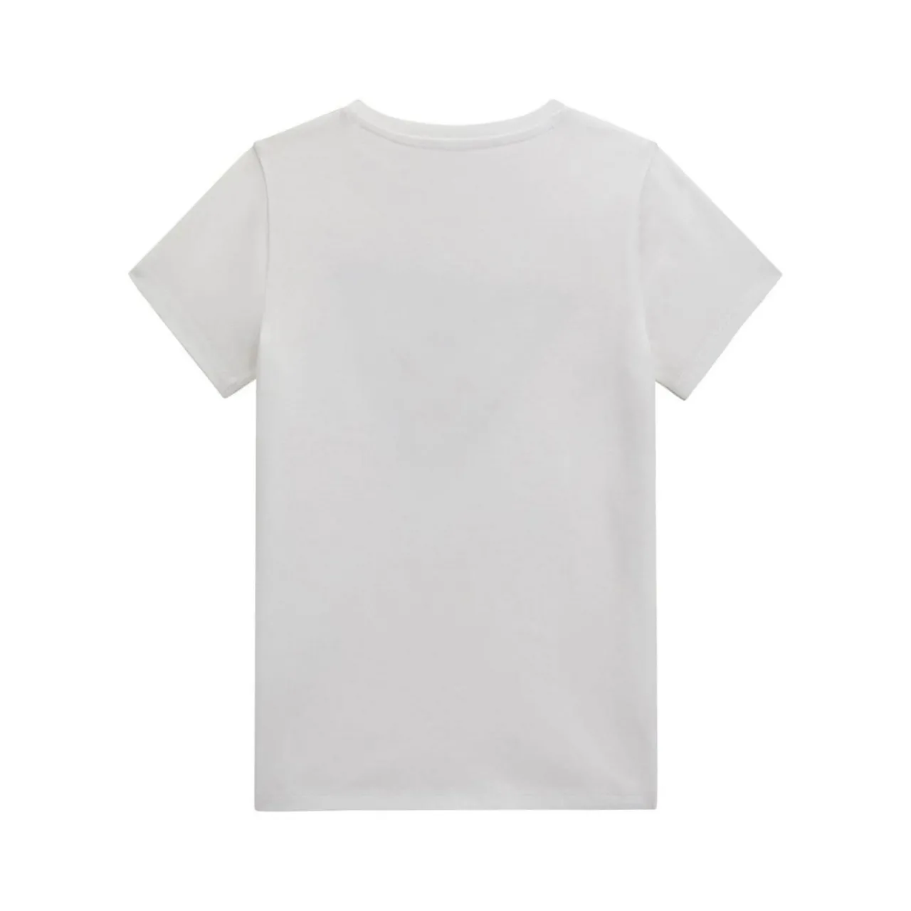 - Short sleeves, round neckline, iconic Guess triangle logo adorned with dazzling sequins, tonal stitching, straight hemline, smooth fabric