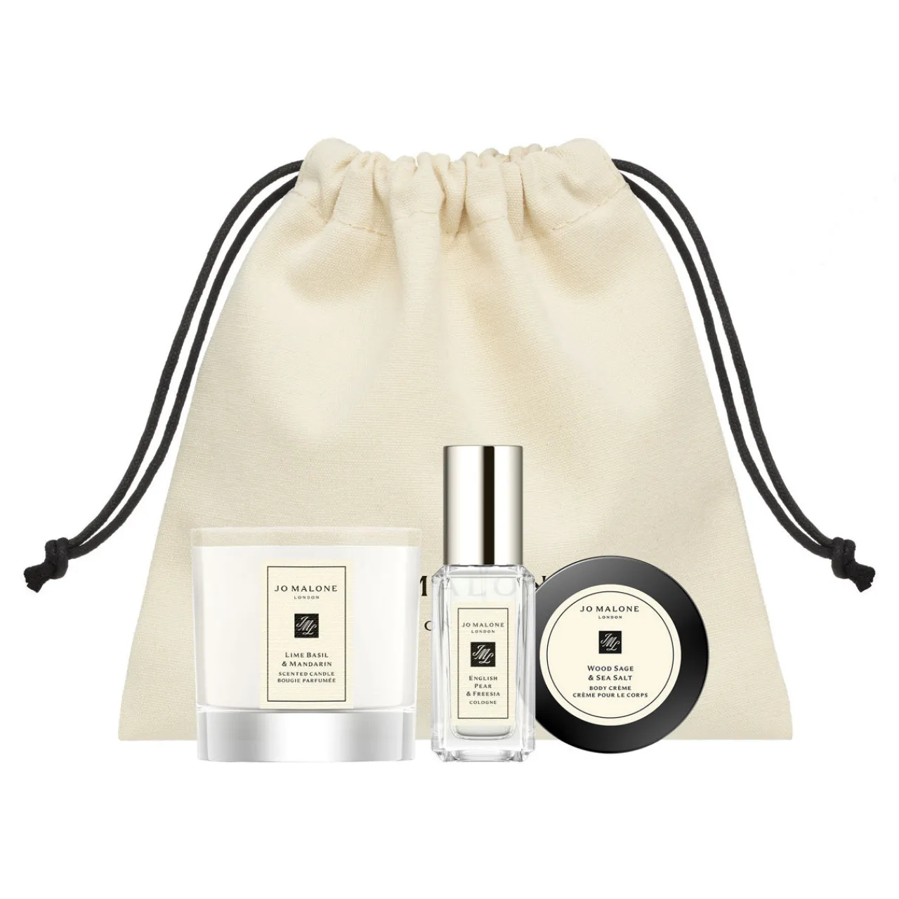 A trio of Jo Malone London miniatures to discover, including a Cologne 9ml, Body Crème 15ml and Miniature Candle. Wrapped in a reusable draw-string pouch, to surprise someone special or keep for yourself.