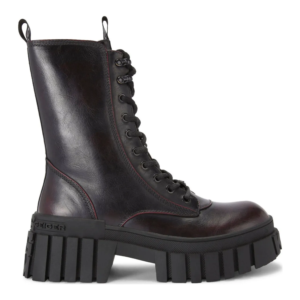 - Lace-up fastening, two pull tabs, round toe, chunky tread sole, block heel