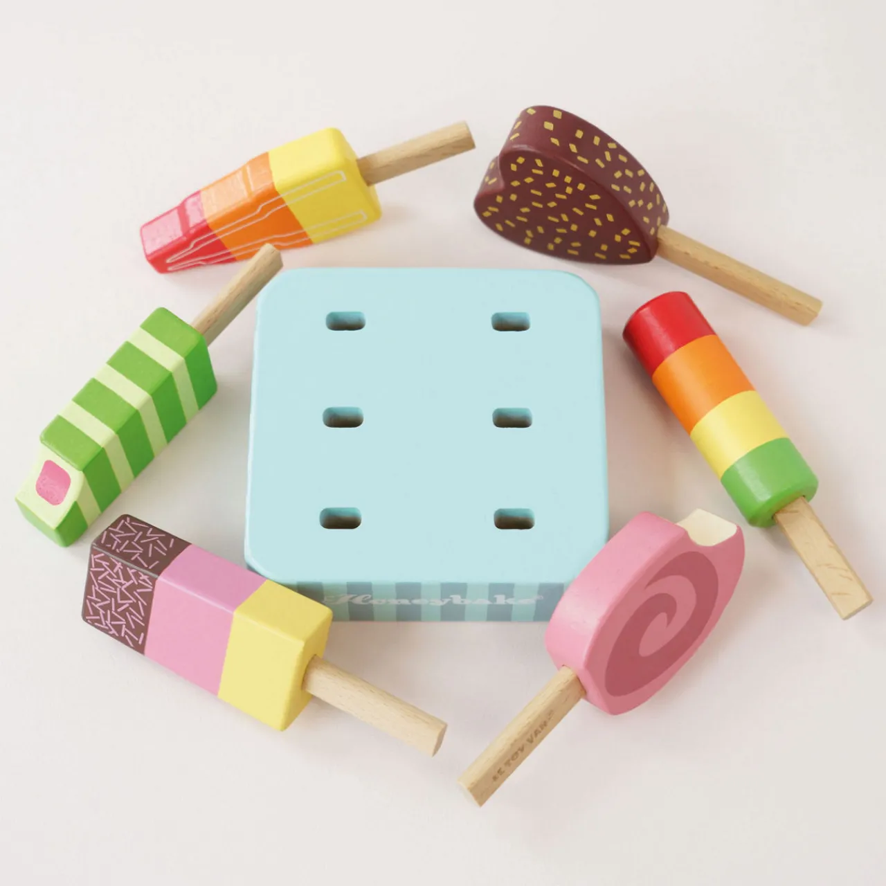 - Role play wooden ice lollies, 6x lollies, 1x stand