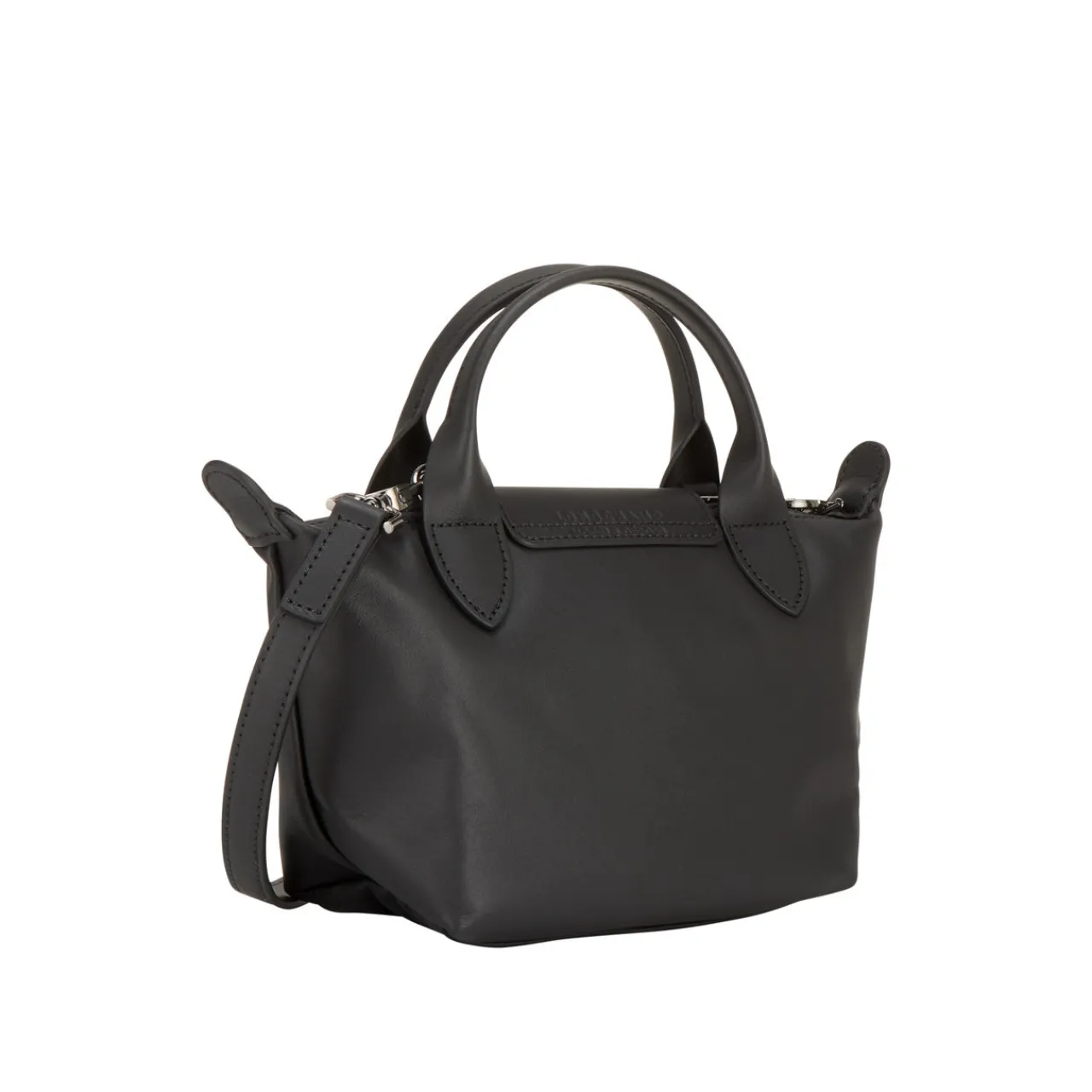 - Two top handles, flap with snap-button closure, top-zip fastening, one main compartment, one interior pocket with zip fastening, one interior flat pocket, detachable and adjustable shoulder strap, gunmetal-tone hardware, logo design, smooth finish