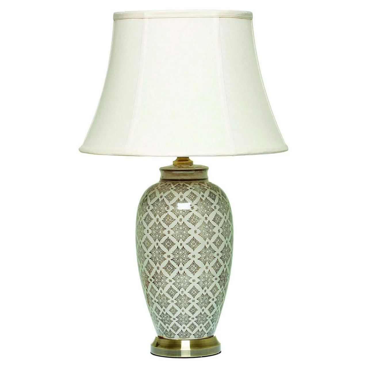 - Composition and Care: Ceramic, brass, linen. Always turn off and allow to cool before cleaning. Use a soft, dry cloth to gently wipe down. Regularly clean bulbs to maintain brightness and efficiency. Inspect cords and wiring for any signs of wear or damage, replacing as necessary. When replacing bulbs, always use the correct wattage to prevent overheating or damage