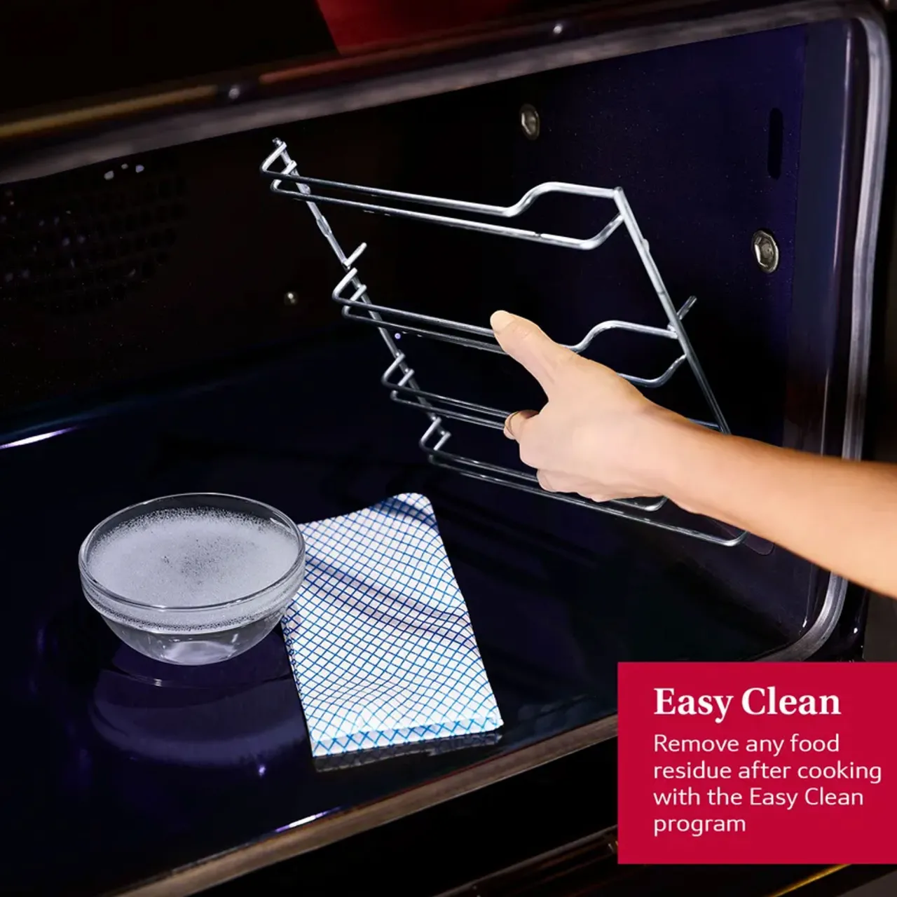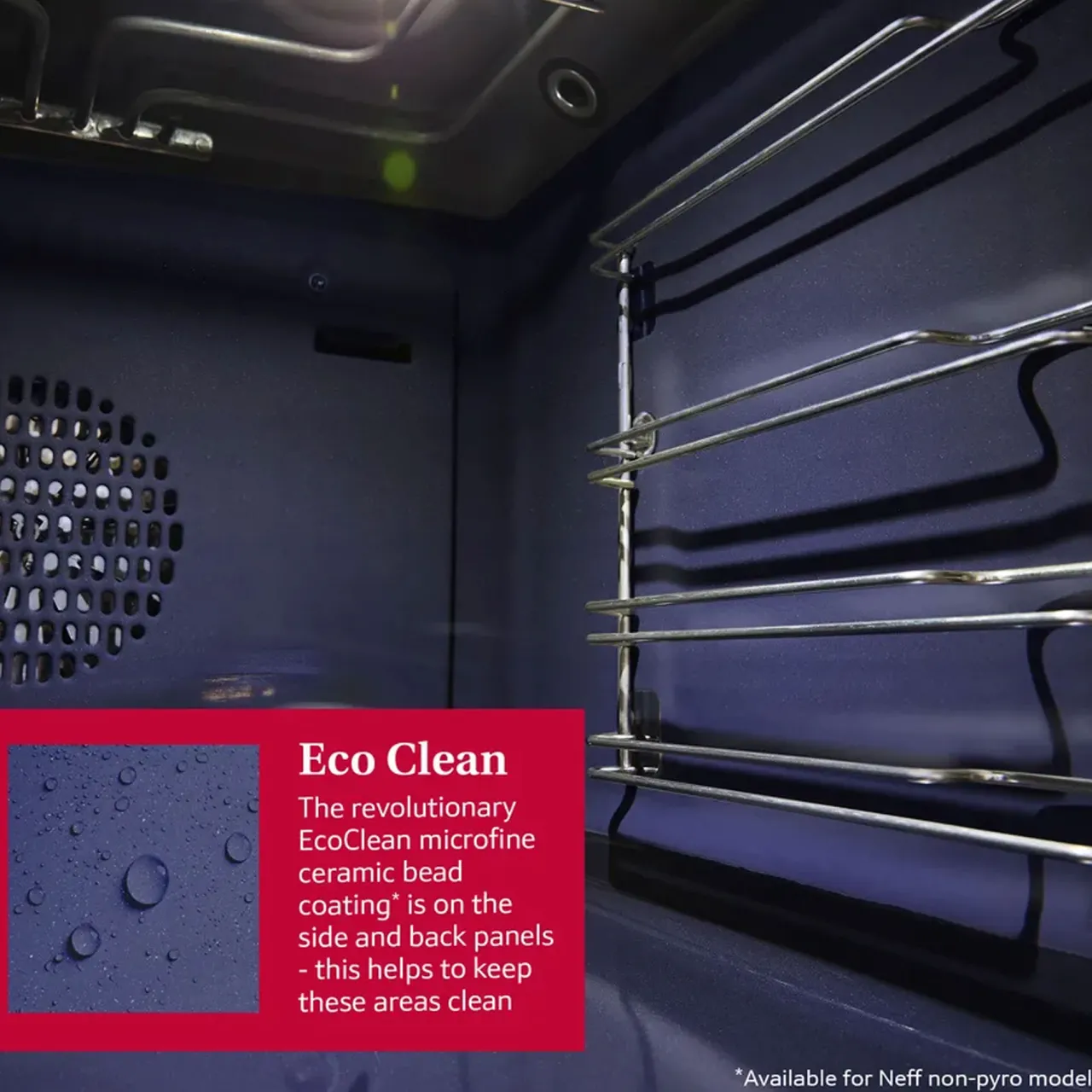 Debating whether or not to make that chicken roast? With Eco Clean, there’s no need to avoid the cleaning afterwards. The ecolytic coating traps the grease generated during baking, broiling and roasting and breaks it down with each cooking cycle. When the oven reaches high temperatures, back side cleans itselfs. It will be completed by Easy Clean for the cleaning of the base and side walls of the oven interior.