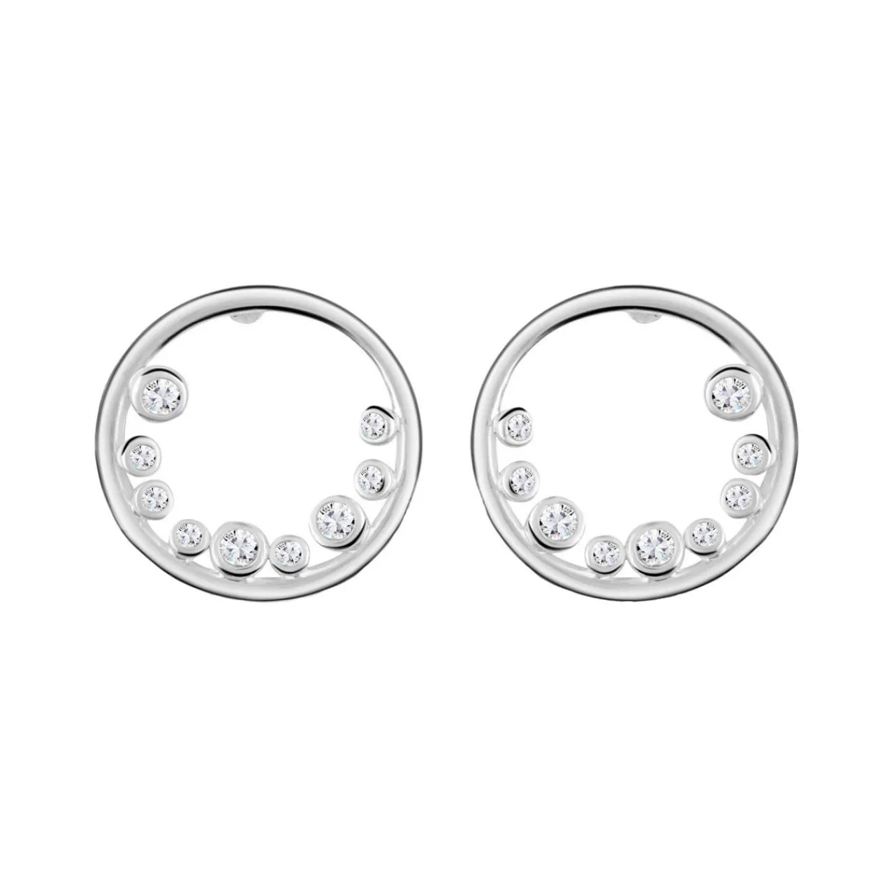 - Circular design, cubic zirconia stone settings, butterfly post fastenings, presented in a branded gift box