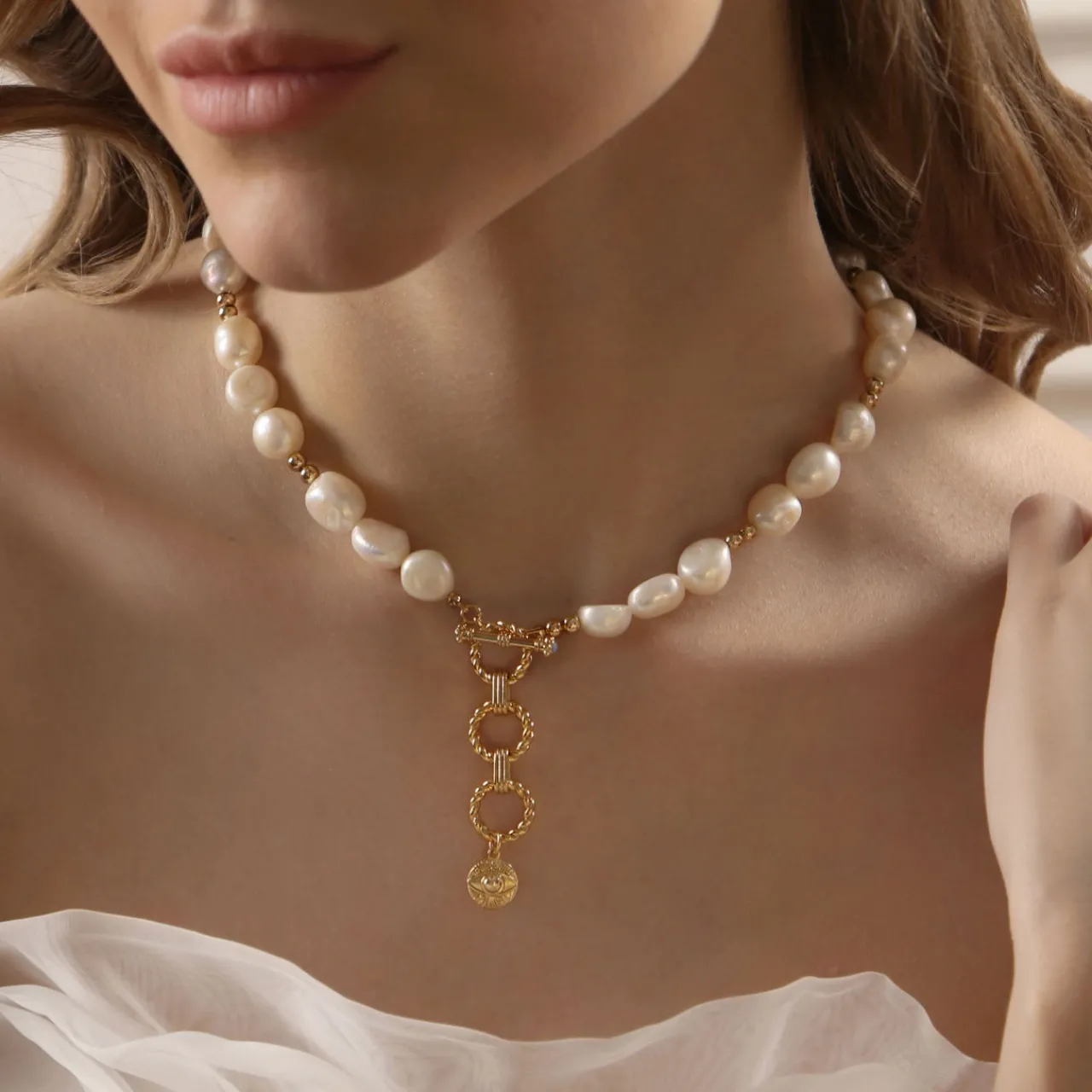 - Composition: 14k gold plated, anti tarnish layer, freshwater Baroque pearl settings