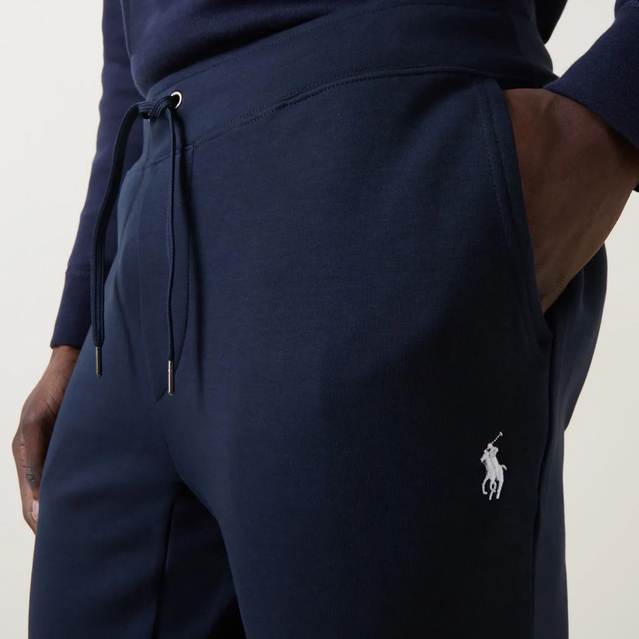 - Elasticated drawstring waistband, slit pockets, back pocket, Polo Player logo embroidery, stretch ribbed cuffs, smooth fabric