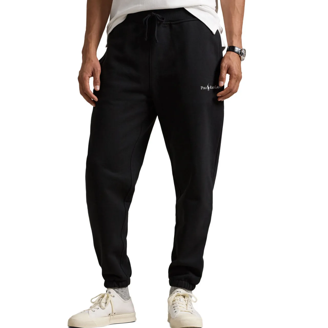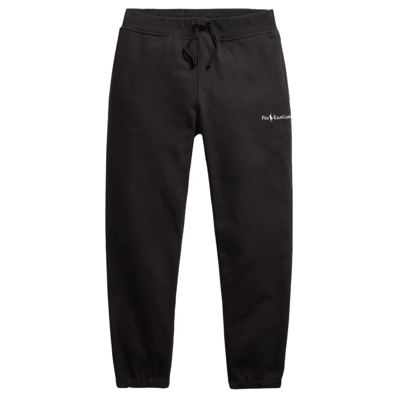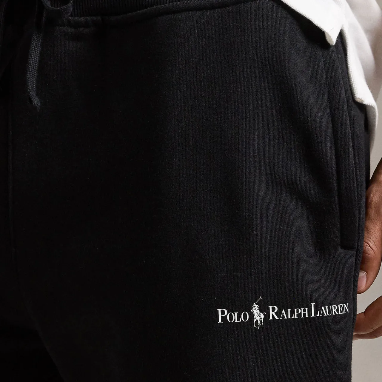 - Ribbed drawstring waistband, side on-seam pockets, back right patch pocket, ribbed cuffs, script and polo player logo detail printed at the right thigh