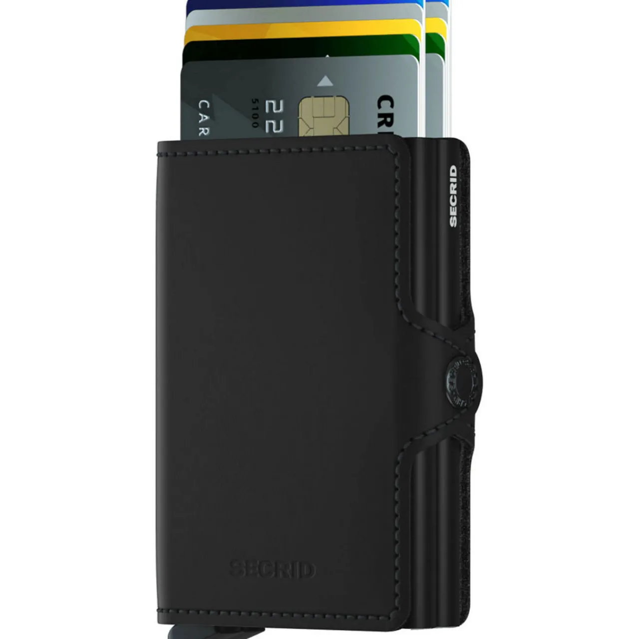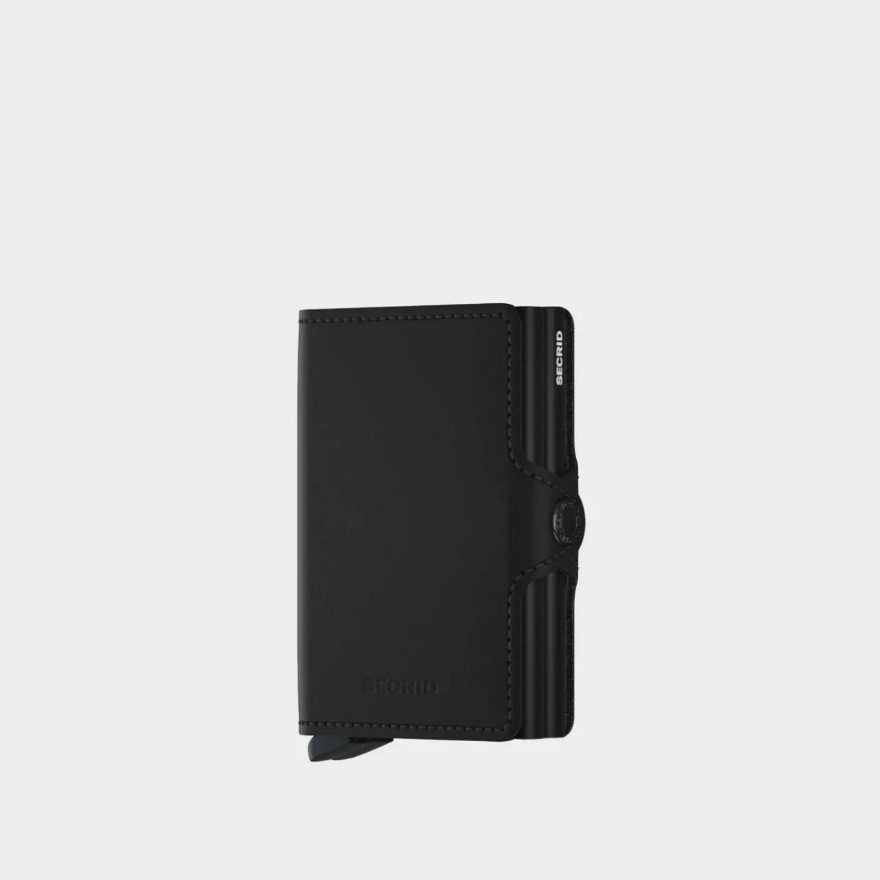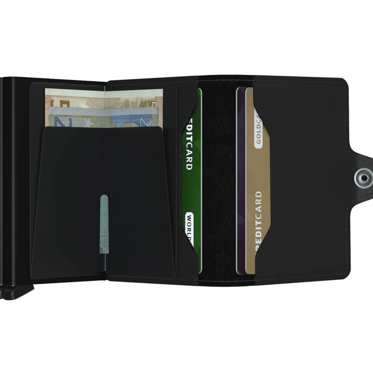 - Twin aluminium card holders, snap button fastening, stitching detail, fits up to 16 cards.