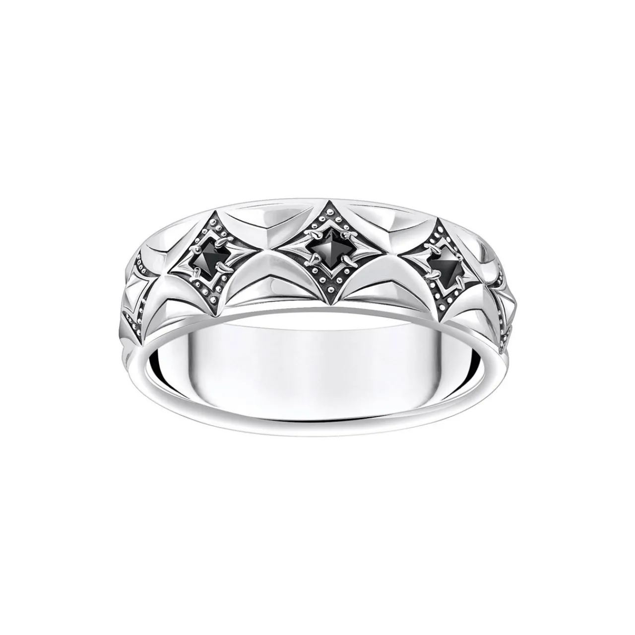 - Band style, rhombus pattern, hand-set stones in the symbolic number 4