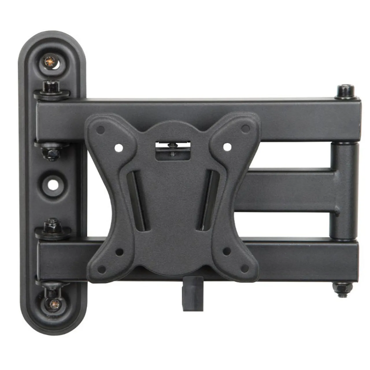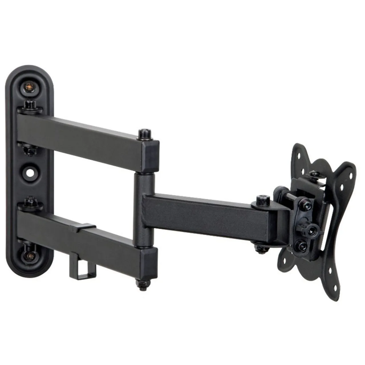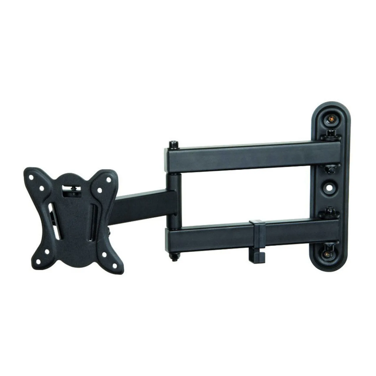 An ideal solution for most 14″-24″ flat panel TVs up to 25kgs. The simple construction allows for easy installation whilst the adjustable swivel arm and tilting VESA plate provide maximum viewing flexibility. It comes complete with cable tidy clips to help with cable routing and prevent unsightly cables hanging below your TV. The key hole VESA plate has been designed to allow TVs to be easily installed reducing the amount of heavy lifting required. Maximum VESA 100×100.