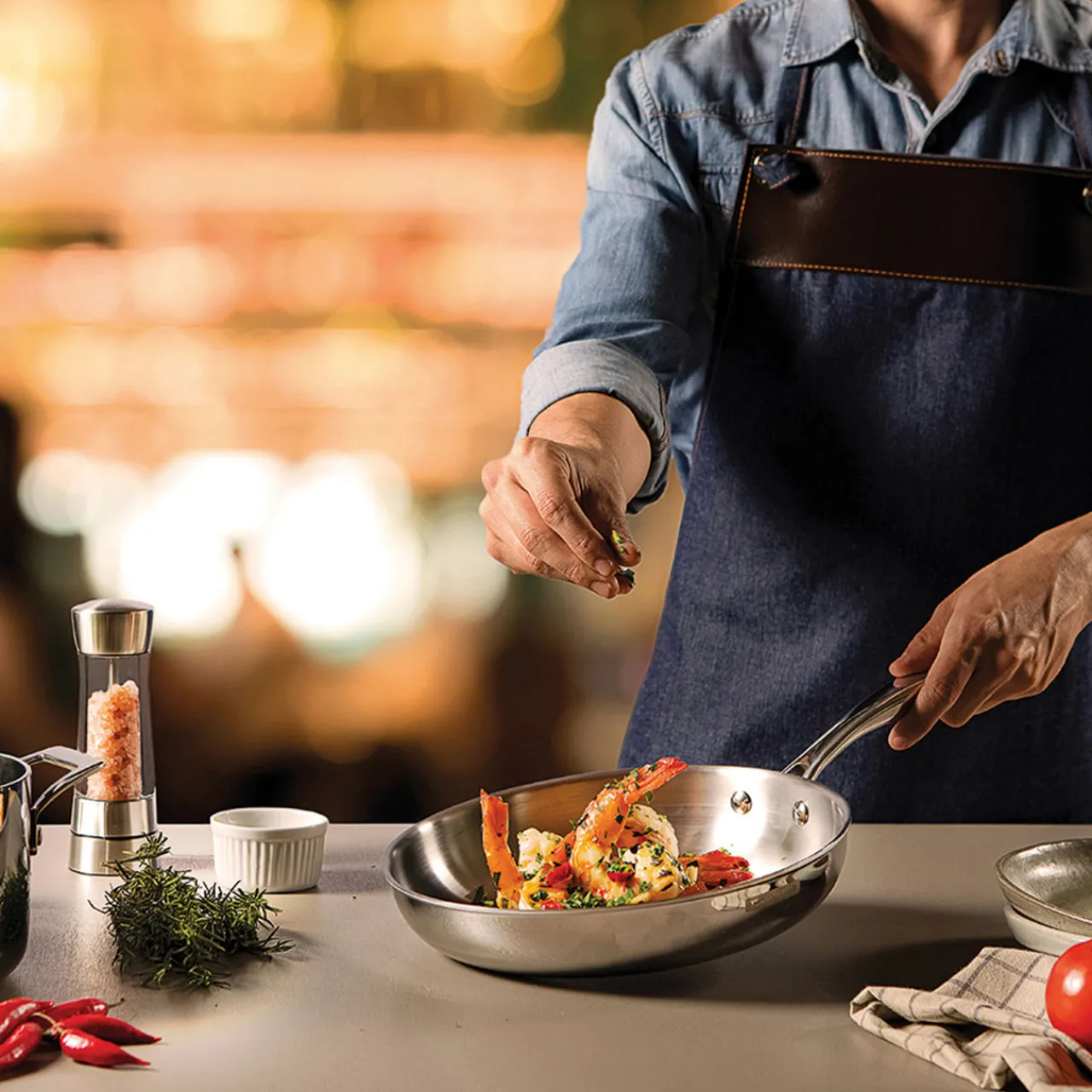 - Triple layer construction (stainless steel + aluminium + stainless steel) for even heat distribution and more efficient cooking, features Tecnoheat technology, highly polished stainless steel exterior, stylish handles riveted for stability and added support, designed to withstand repeated usage even in the most demanding kitchens