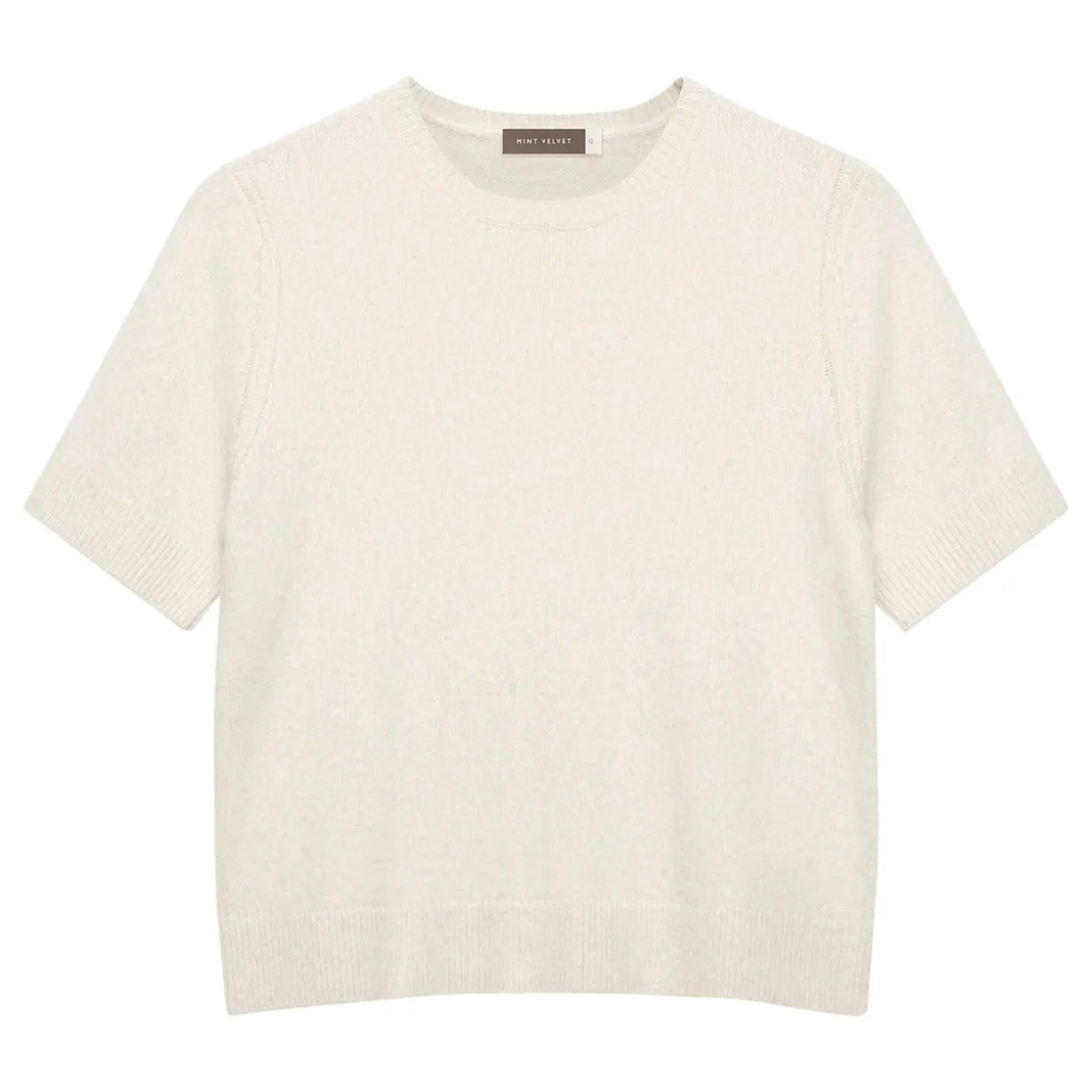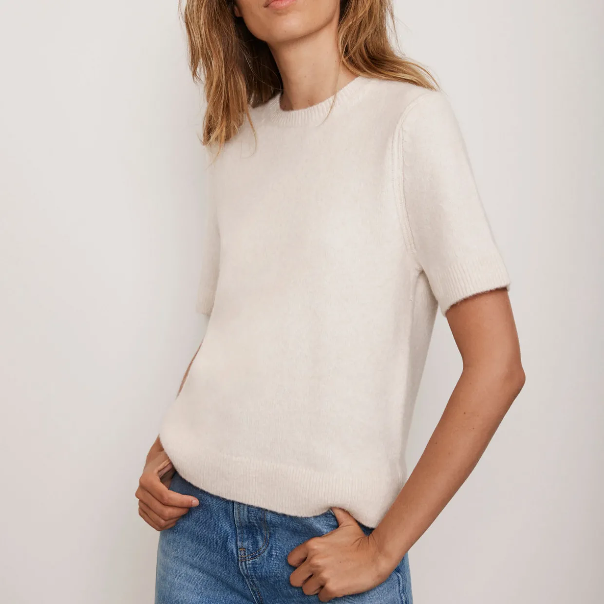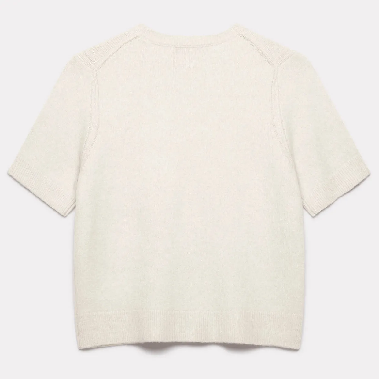 - Round neckline, short sleeves, straight hemline, ribbed trims, fine knit structure