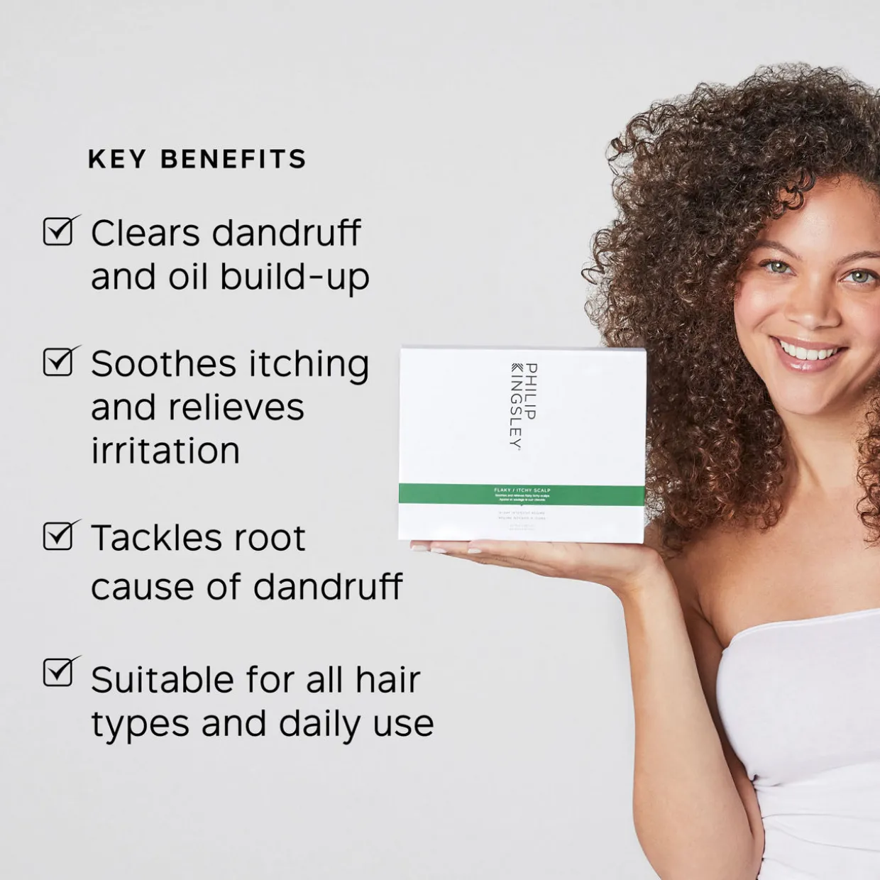 - Instructions for use: STEP 1 FLAKY/ITCHY SCALP MASK: Dampen the entire scalp and hair. Apply the formula from the tube-nozzle directly to the scalp in partings approx. 1” (3cm) apart, working from the front of the head to the back. One tube is adequate for one full scalp application. Using your fingers, gently spread the formula over the parted hair line onto the scalp and leave to absorb for 10-20 minutes. Rinse and follow with a double wash, using Philip Kingsley Flaky/ItchyScalp Shampoo. Use mask at least once a week until flaking is under control/scalp is cleared, and thereafter as required. STEP 2 FLAKY/ITCHY SCALP SHAMPOO: Use daily until scalp is clear, and thereafter at regular intervals as required. Apply to wet hair and lather, gently kneading the scalp for 60 seconds. Rinse well and repeat if necessary. Condition hair using the appropriate Philip Kingsley conditioner for your hair type. STEP 3 FLAKY/ITCHY SCALP TONER: Apply to scalp from the nozzle in 1” (3cm) sections. Distribute with fingertips. Do not rinse. Comb through and style. Reapply as often as required. Use on wet or dry scalp and hair.