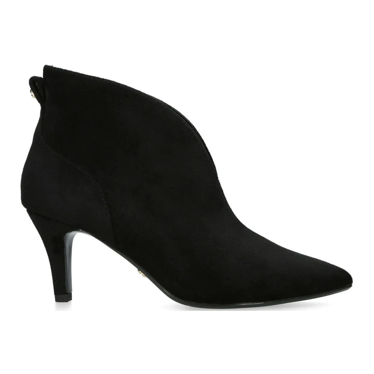 - Pointed toe, curved shape, stiletto heel, logo hardware, slip-on style