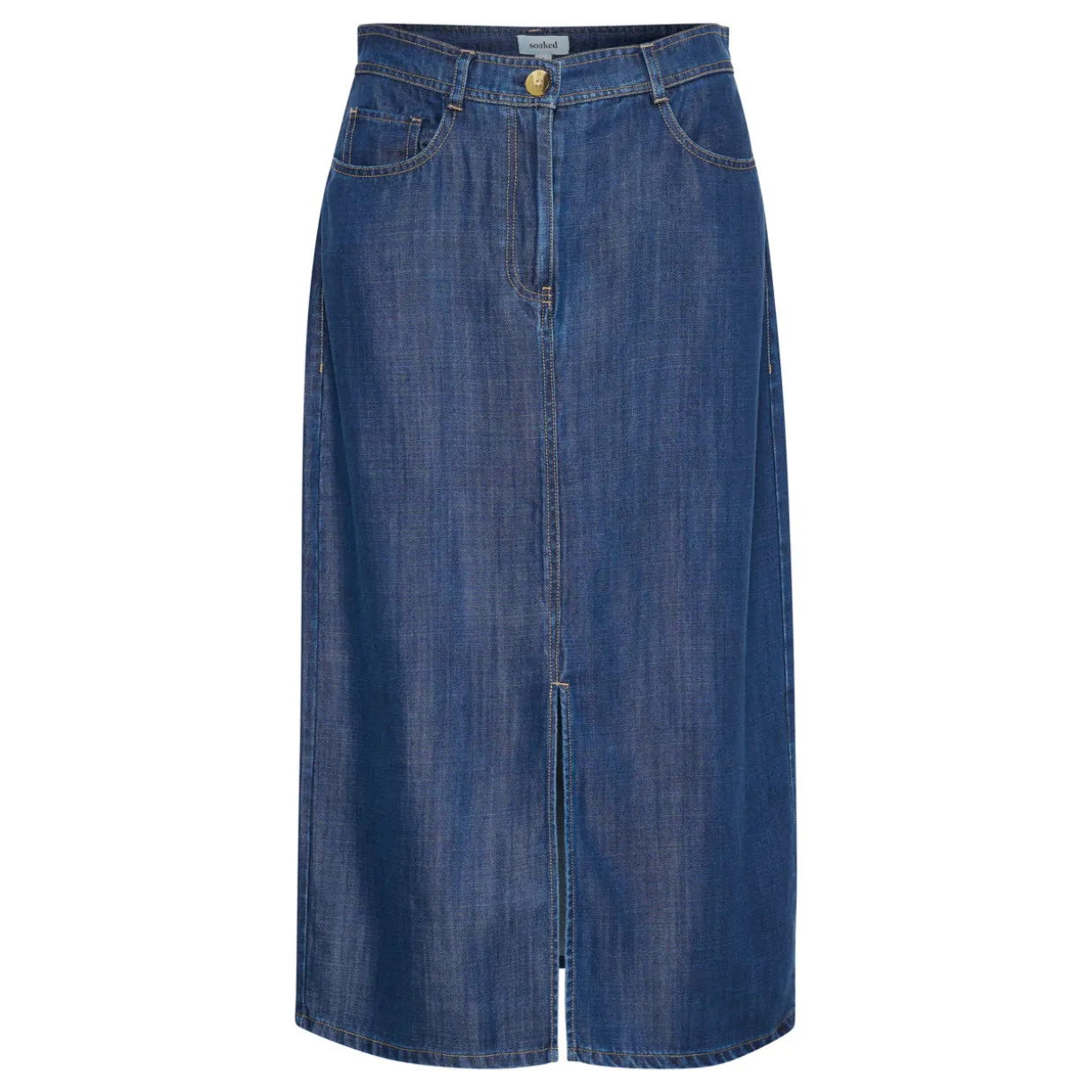 - Regular waistband, zip fly and button fastening, straight style, front slit, five-pocket style, belt loops