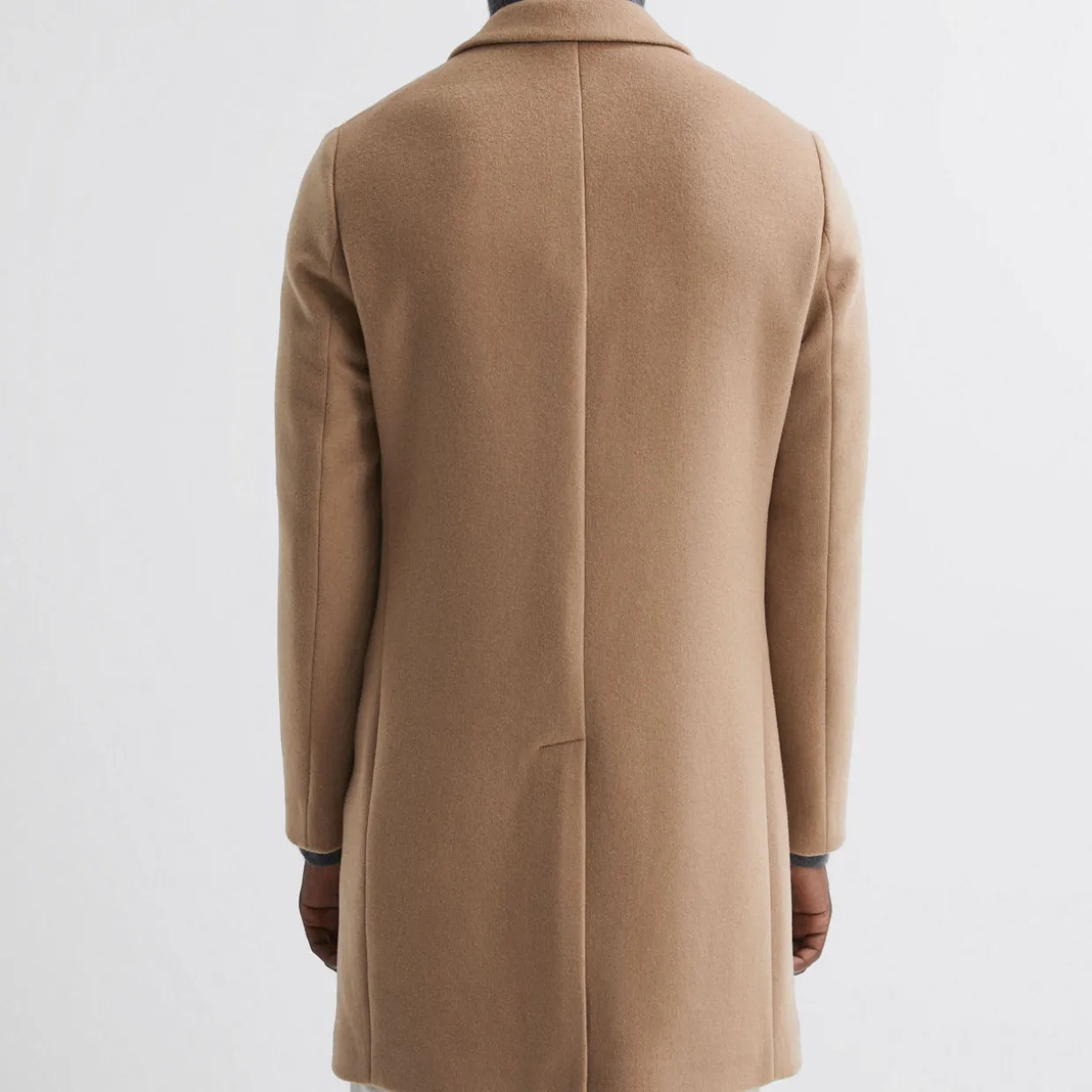 - Wool blend, single-breasted, notch lapels, three-button fastening, long sleeves, side-slip pockets, vent to reverse, lined