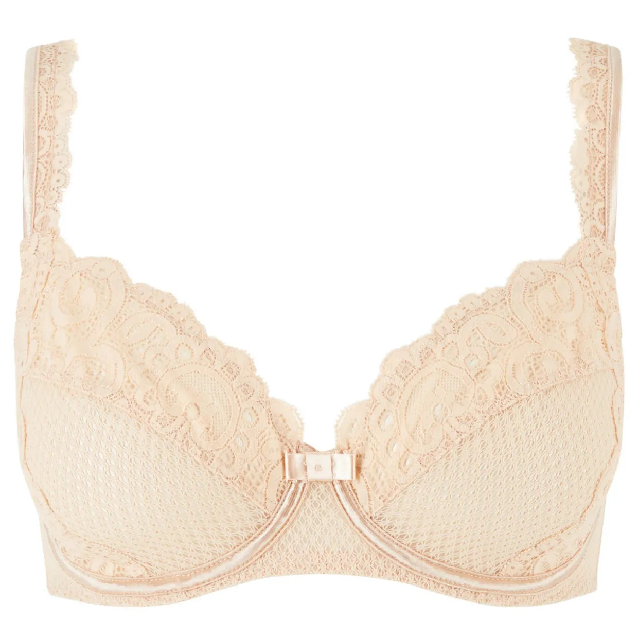 - Floral embroidery, underwired, soft cup bra, lace trims, hook-and-eye fastening, adjustable straps.