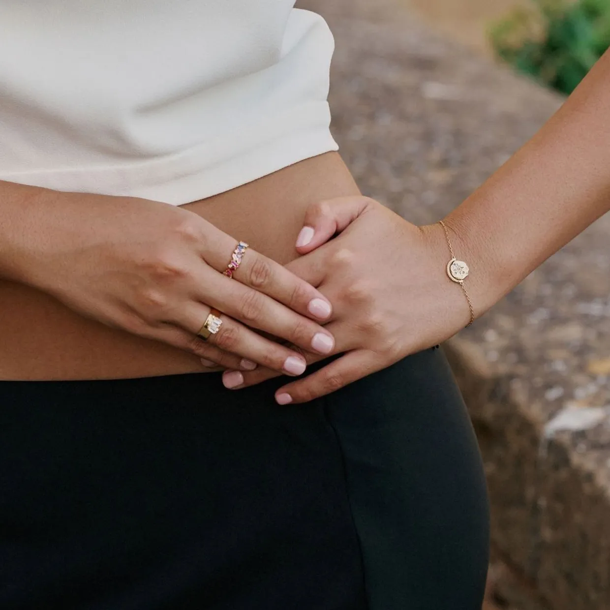 - Electrocoating applies a protective layer to jewellery via an electrically charged solution, ensuring durability, corrosion resistance, and consistent colouring, gold-toned hardware, sun, moon and star motif, clasp fastening, adjustable length