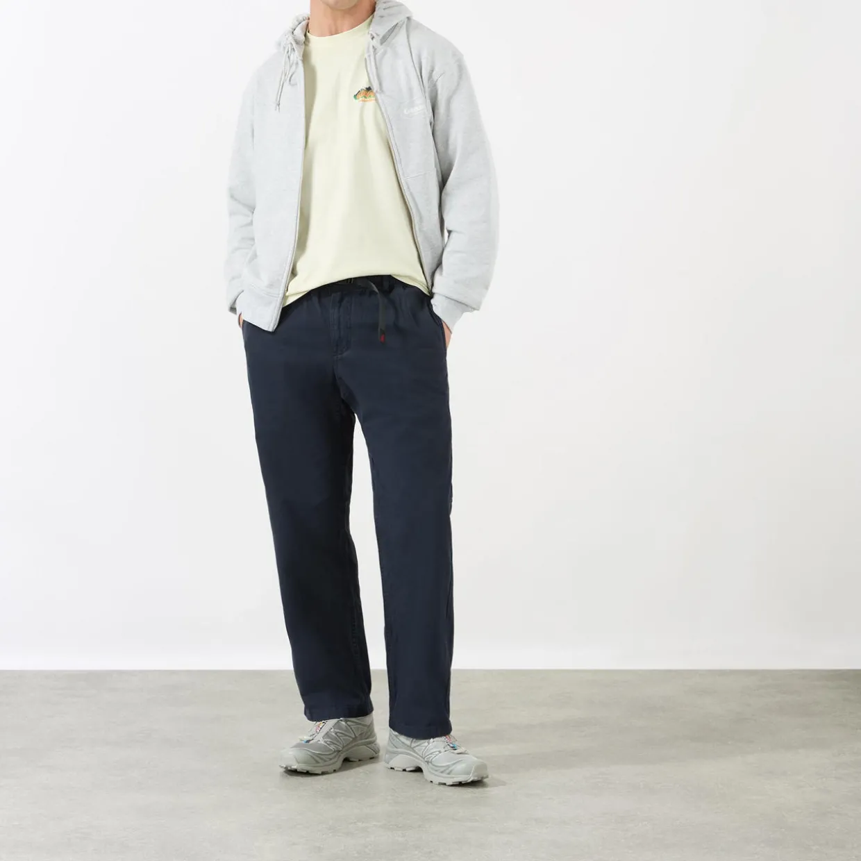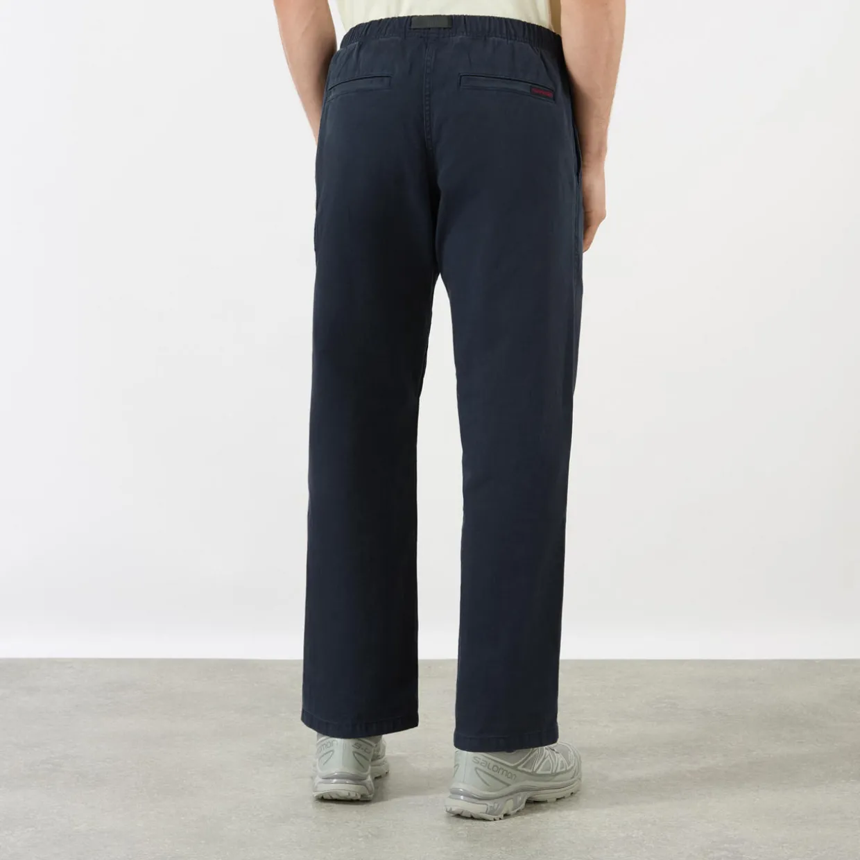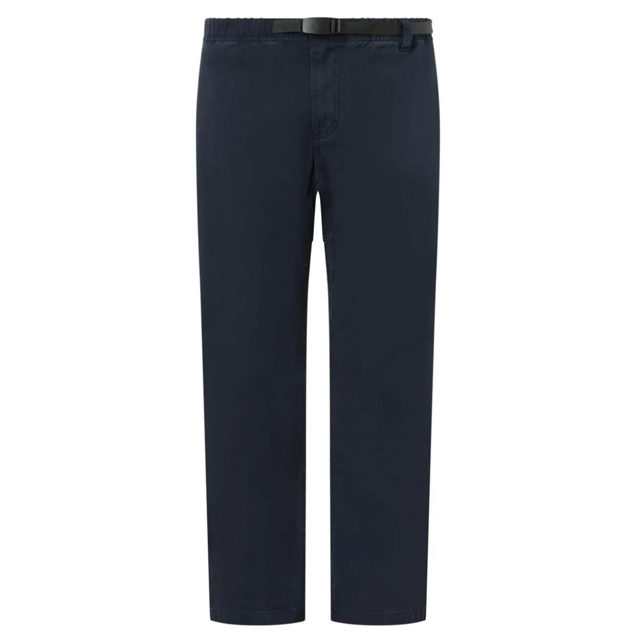 - Elasticated waistband, adjustable belt, belt loops, rear logo patch, two side in-seam pockets, two rear welt pockets, mid-rise, straight-cut leg, smooth fabric