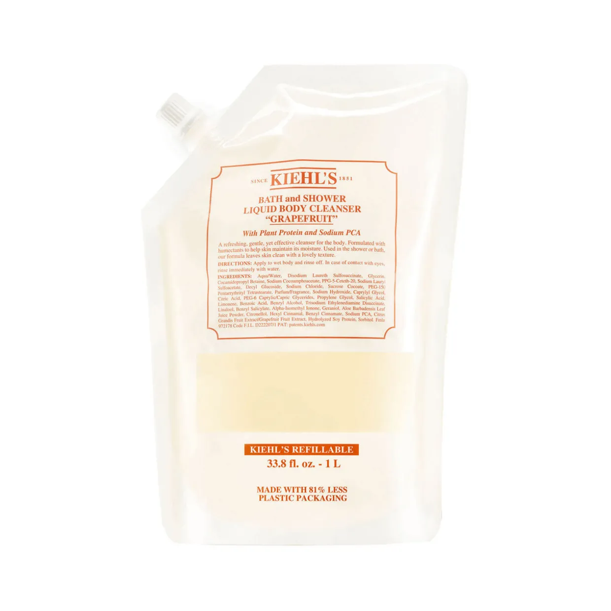 YOUR FAVOURITE FORMULA, NOW REFILLABLE In Kiehl’s ongoing mission to reduce our environmental impact, this beloved formula now comes in a refillable pouch! Made with 81% less plastic*, one pouch replaces four plastic bottles to help reduce the amount of single-use plastic on your favourite Kiehl’s purchases. As we continue on our way to a Future Made Better together, select our refill pouches for less plastic used and more formula to love! *Based on 1L refill pouch of Grapefruit Liquid Body Cleanser as compared to 4 200ml bottles.