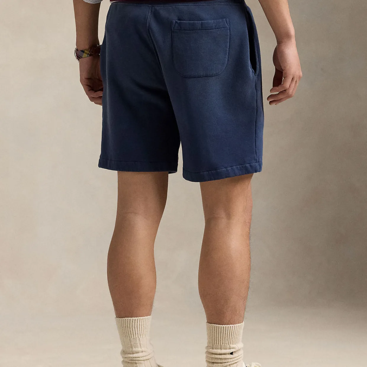 - Vintage-inspired graphic logo detail with winged-foot motif, garment-dyed, lightly sun-faded appearance, ribbed drawstring waistband, sewn fly, two front angled pockets, back right patch pocket
