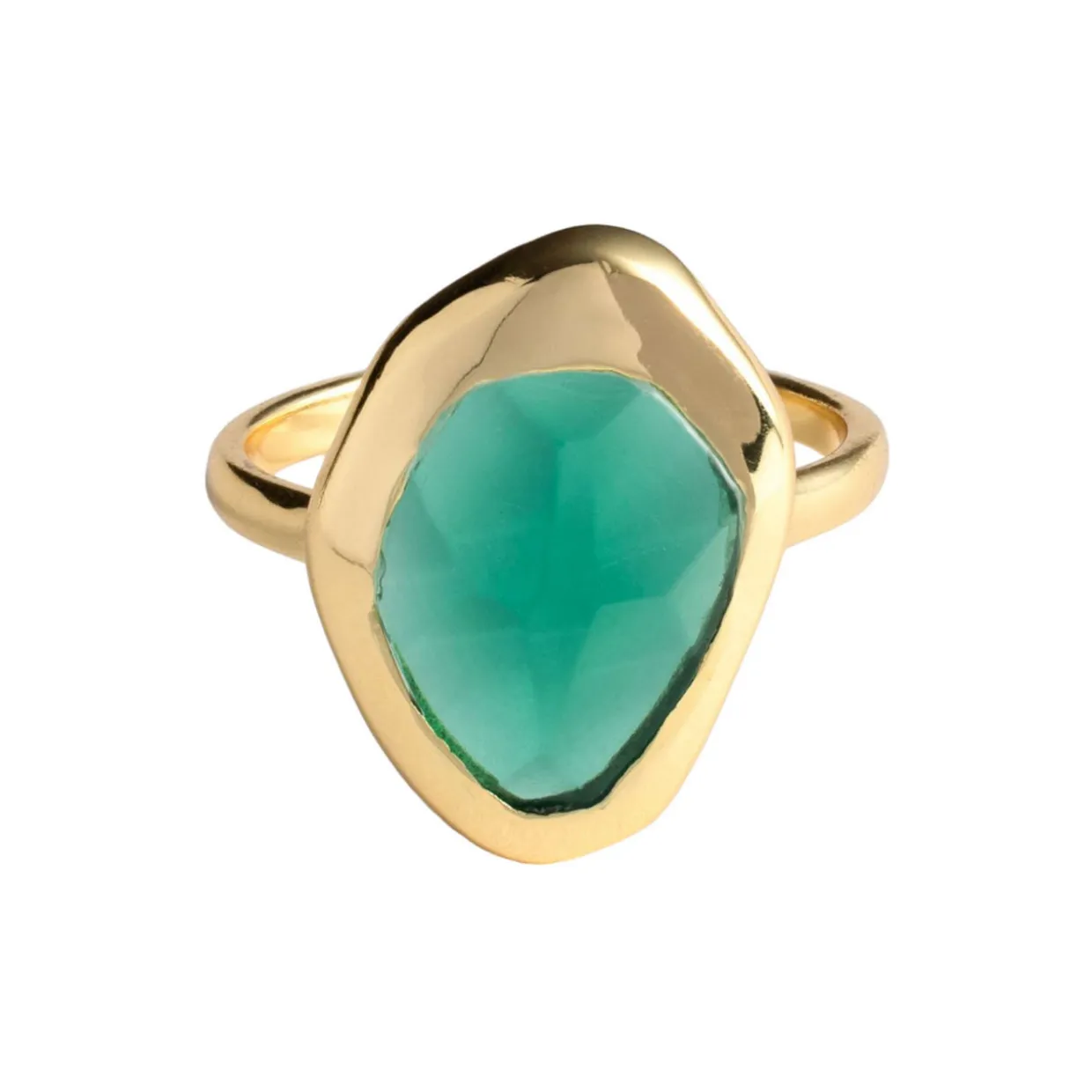 - Hand cut Green Tourmaline natural gemstone, 18kt gold vermeil ring, slip-on style