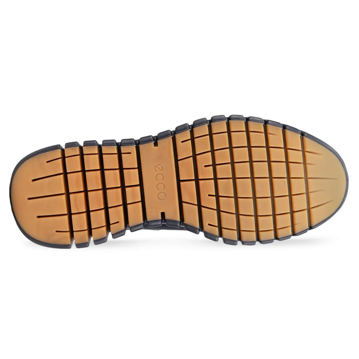 - Crafted in easy to maintain smooth ECCO leather with a reflective trim on the heel GORETEX waterproof protection Smartly designed external loops with elastic shoelaces for on the go adjustment Removable dual fit comfort foam insoles covered in breathable textile This unique feature allows for a customisable width Cushy PU midsole made with ECCO FLUIDFORM™ anatomical fit for a natural feel Dynamic two way flex rubber sole that not only provides you grip but full use of your foot at any angle