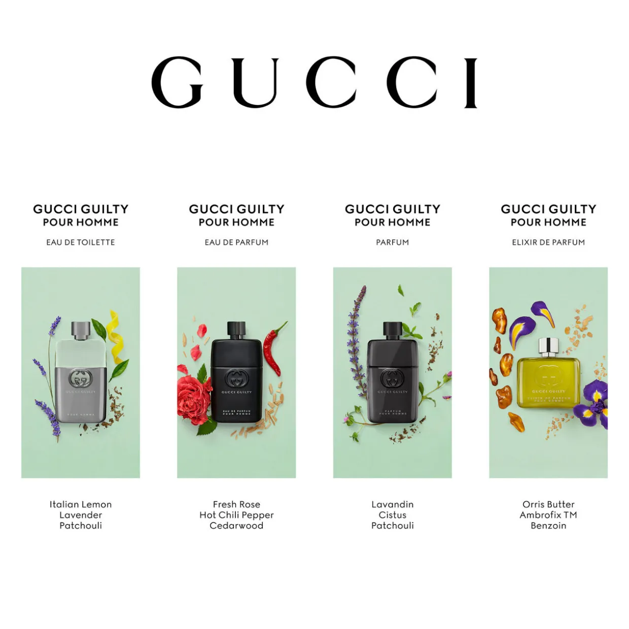 Perfumers Quentin Bisch and Nathalie Cetto embued this Gucci fragrance with a bold and sensual base of vanillin, Ambrofix, and benzoin, which is intensified by an overdose of patchouli, complemented by a flamboyant and noble heart of orris butter, orange flower, and sensuous osmanthus. The fragrance for men is rounded off by tempting accents of peppery pimento and smoky nutmeg.