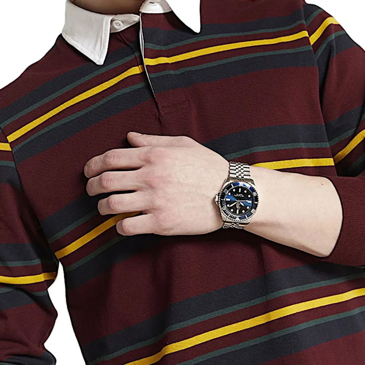 - 3 hands movement type, round case shape, 5 ATM water resistance
