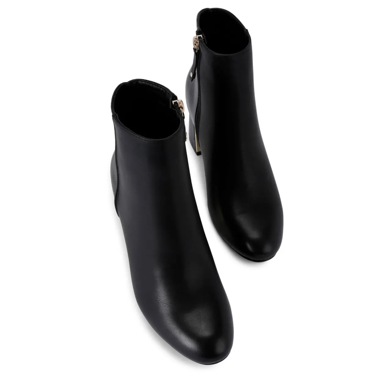 - Ankle height, lizard-embossed panels, block heel, inner zip fastening, round toe