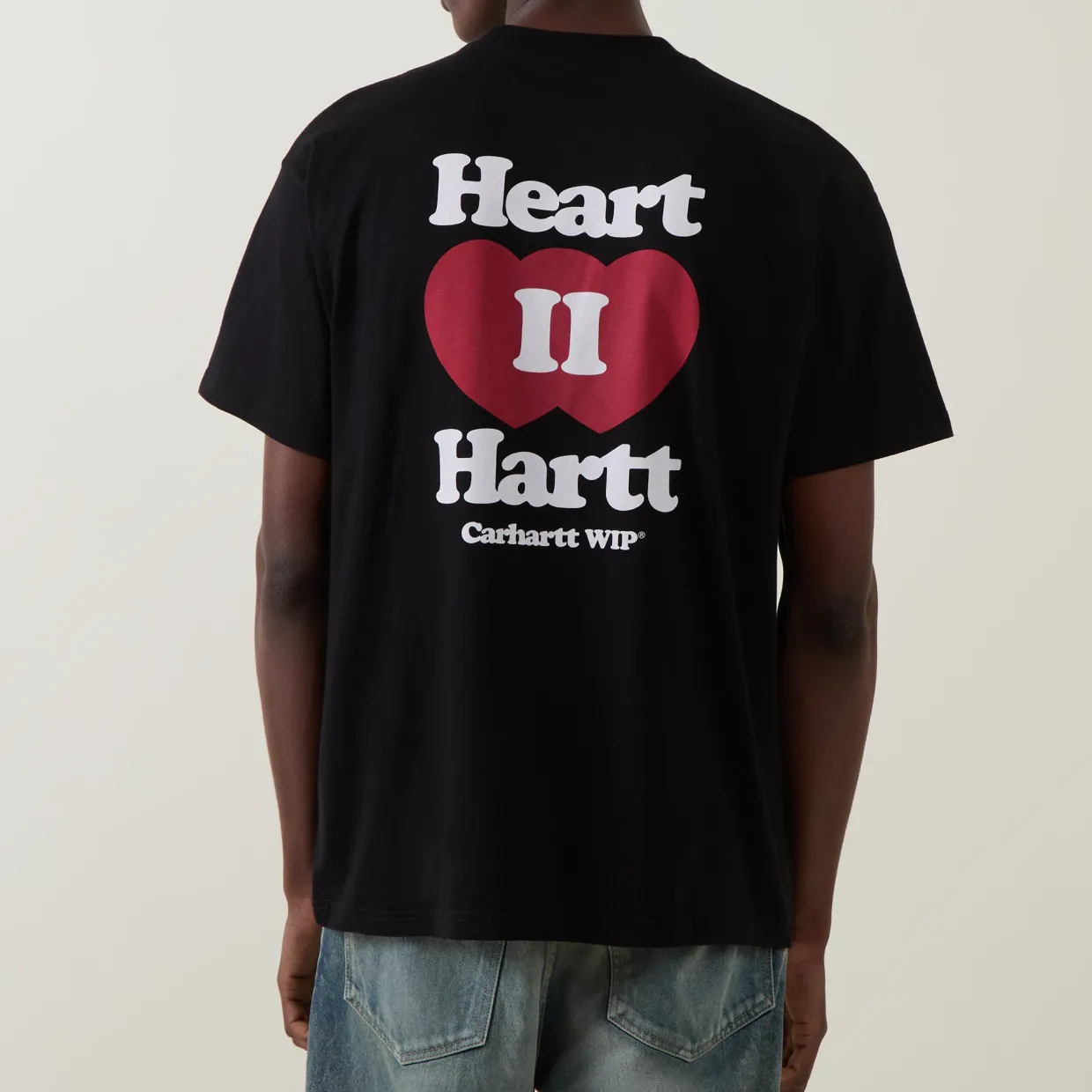 - Heart graphic, round neck, short sleeves, straight hemline, logo detail