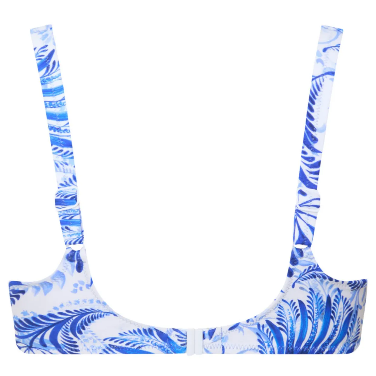 - Adjustable straps, clasp closure, underwired, draped details, printed, decorative metal ring