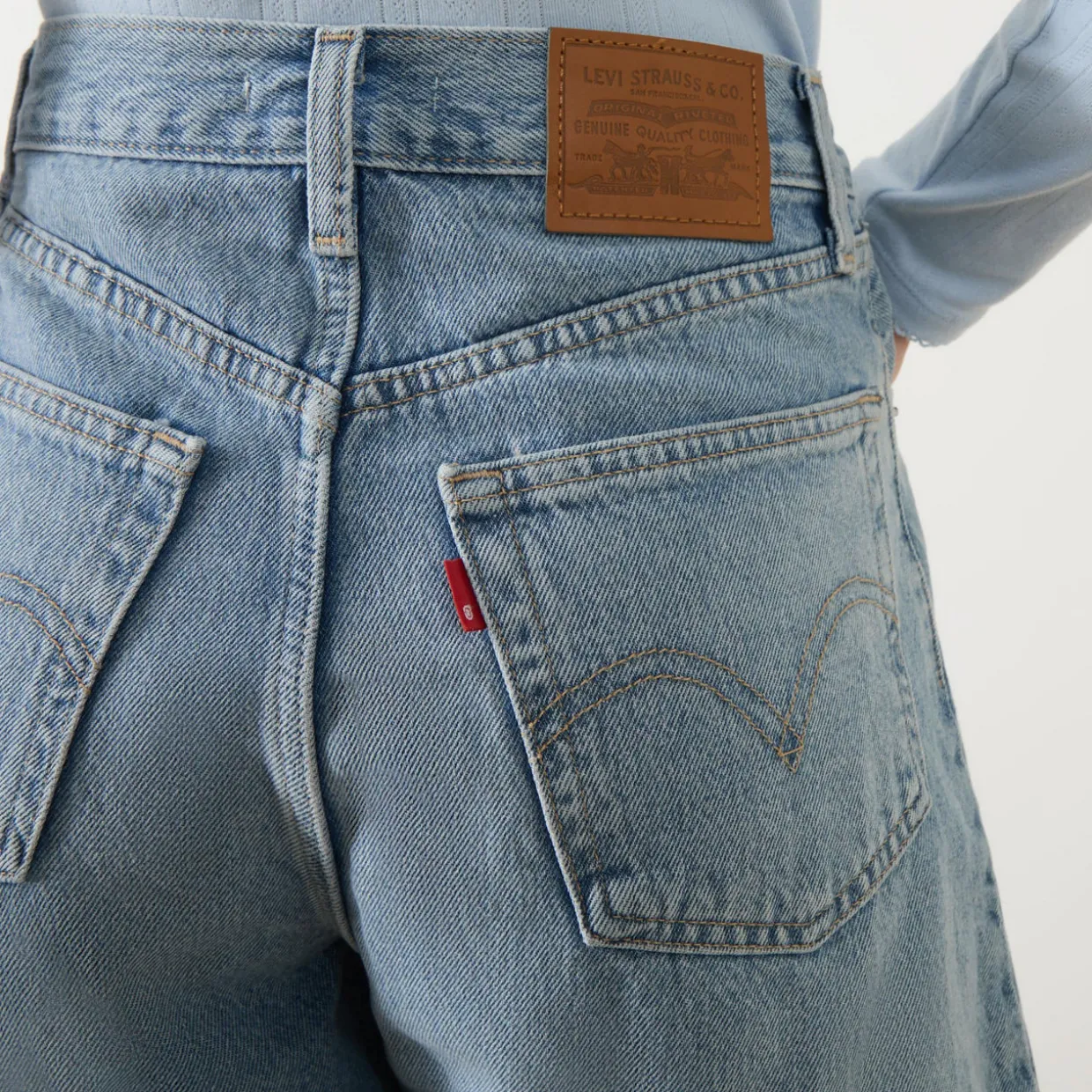 - Baggy fit, high rise, belt loops, zip fly, five pockets, non-stretch