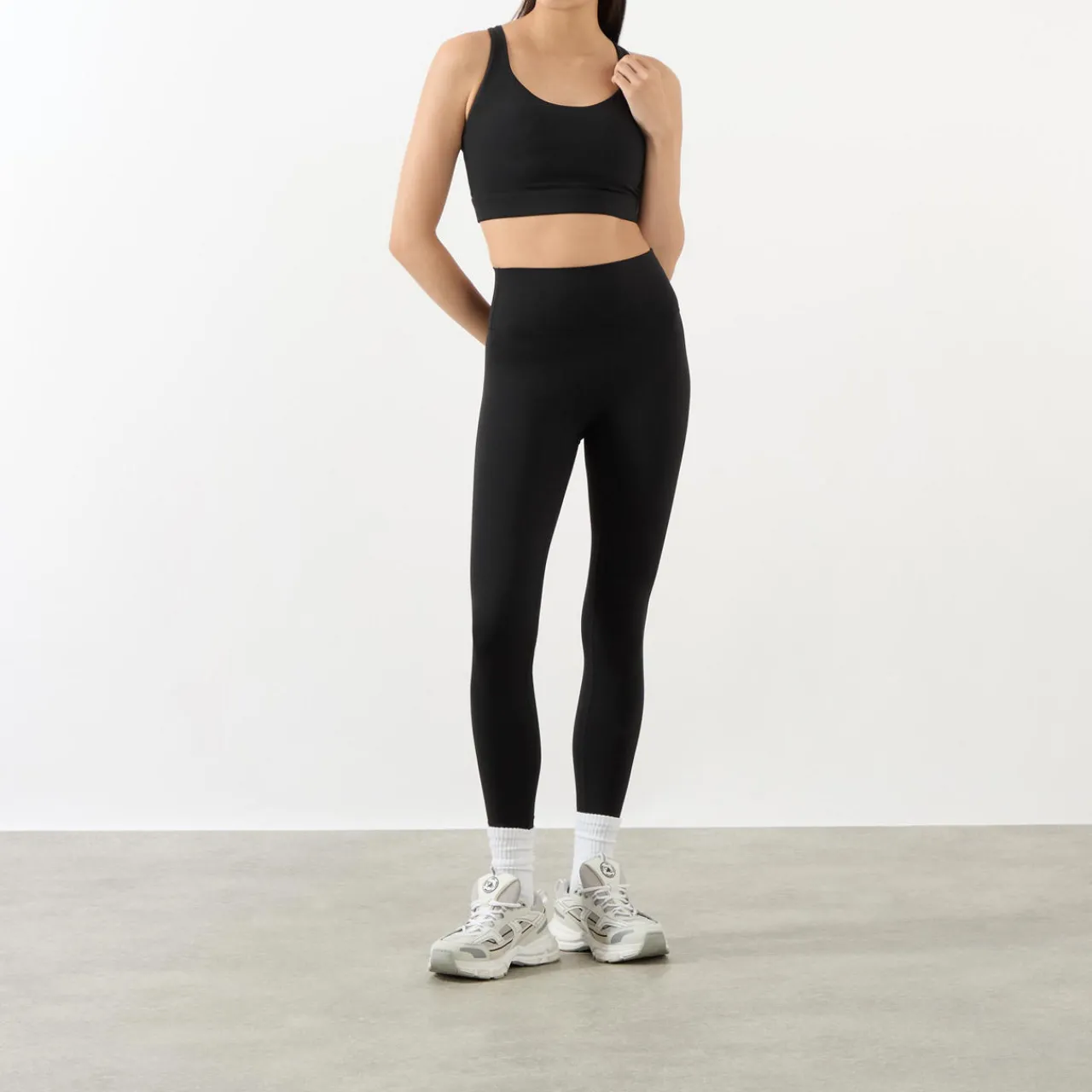 - Compression fit, four-way stretch, supportive