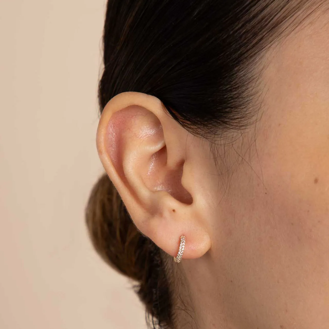 - Huggie style, hinged clasp fastening, chunky silhouette, crystal detailing, gold-plated