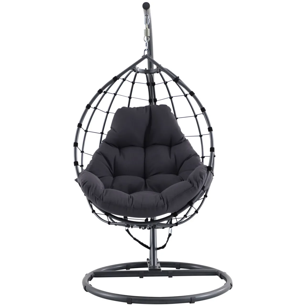 Enjoy ultimate comfort and support with the Shelton Hanging Chair. Sink into the plush cushions and unwind as the chair gently sways you.This chair is perfect for smaller spaces, patios, or an outdoor corner. The season-proof cushions and aluminium frame ensure long-lasting style, no matter the weather.